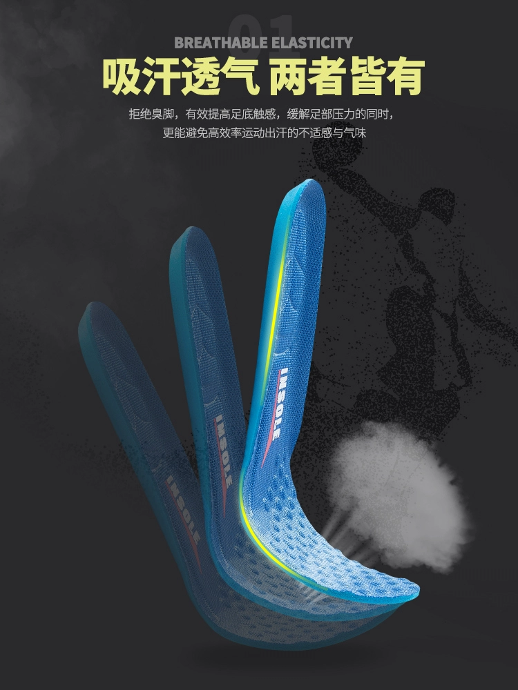 Suitable for Nike insoles, men's summer sports shock-absorbing insoles, thin, breathable, sweat-absorbing, deodorant feather basketball insoles