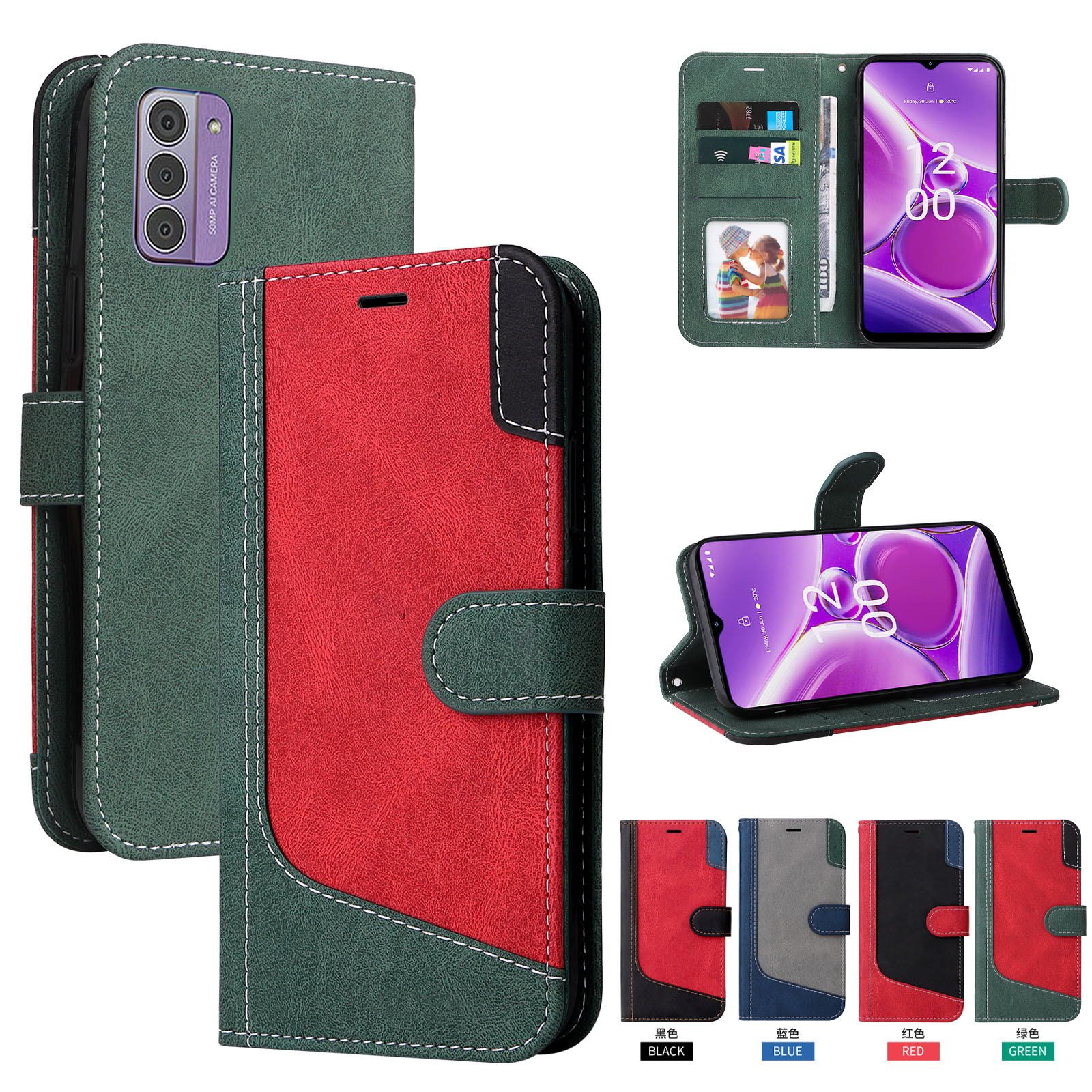 | nameOriginal | Suitable for Nokia G42 5G three-color stitching leather phone case clamshell card protective cover for men |