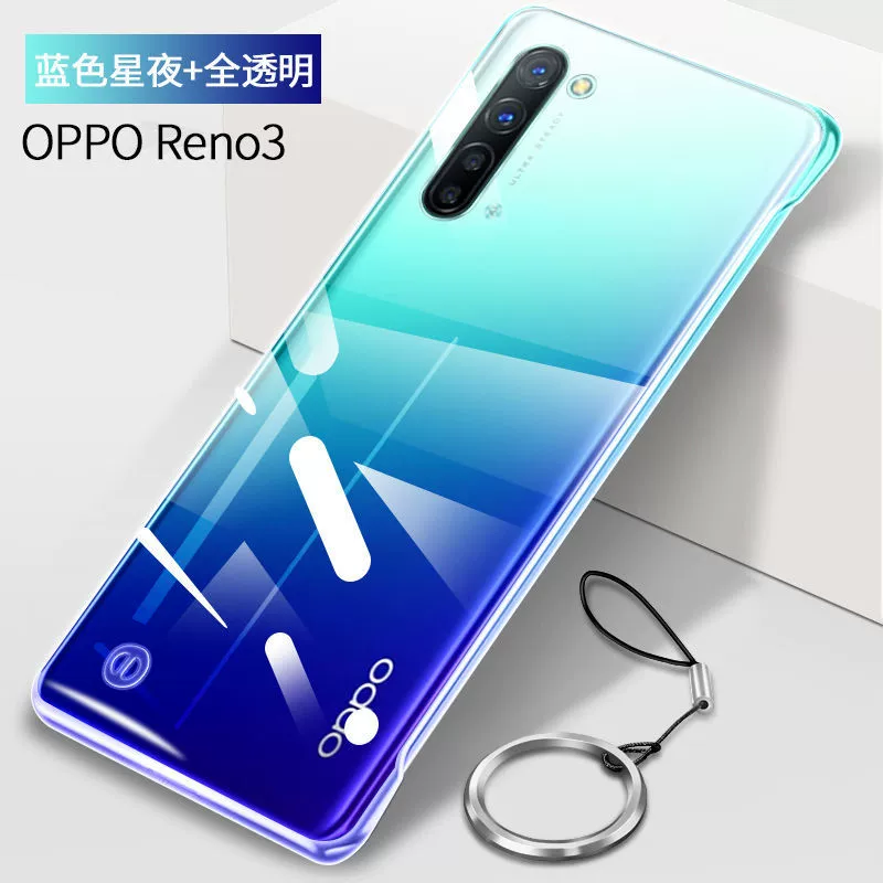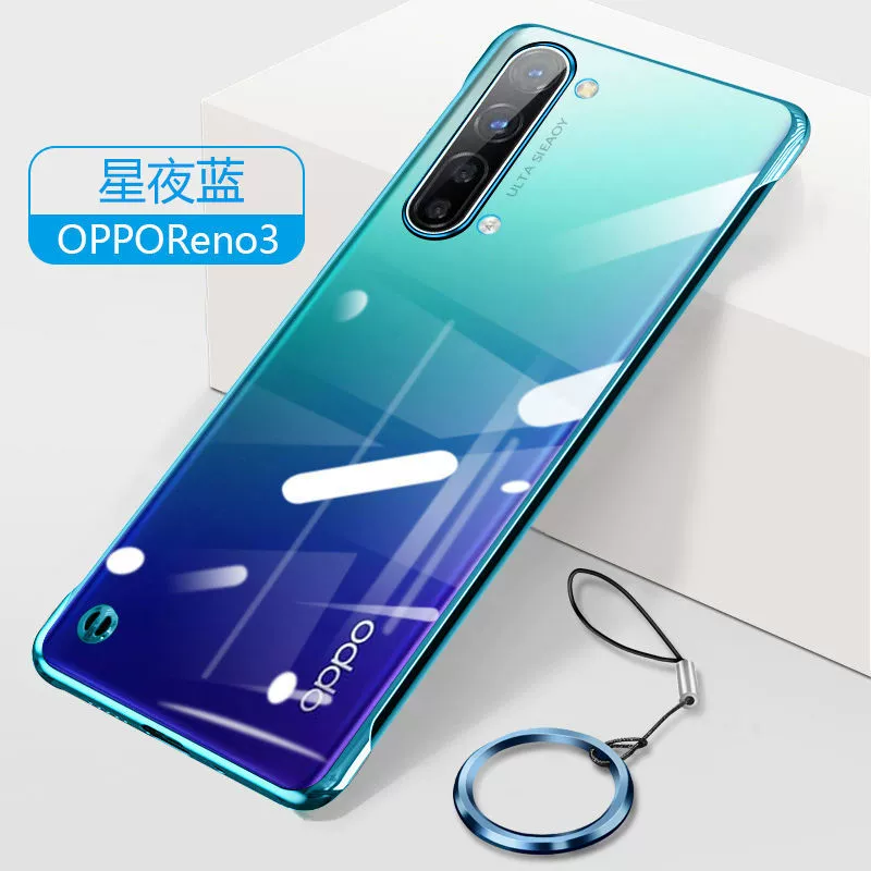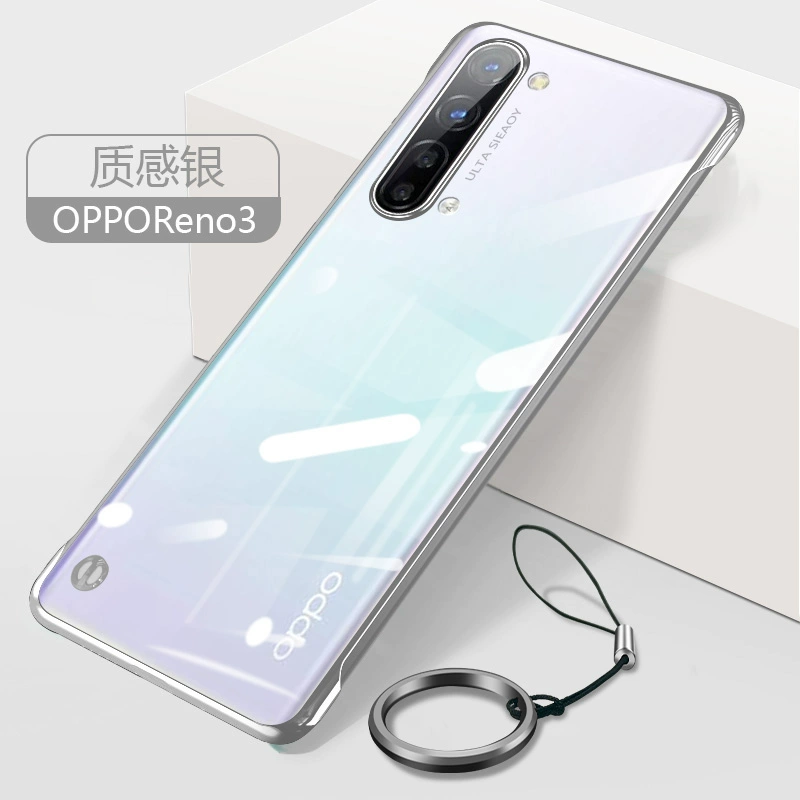 Suitable for opporeno3pro mobile phone case ultra-thin transparent borderless reno3 anti-fall new 3pro hard advanced por electroplated men's and women's protective cover half pack Internet celebrity