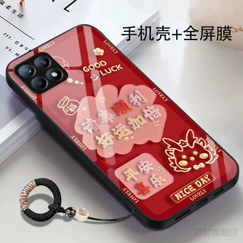 | nameOriginal | Suitable for OPPOReno4se mobile phone case PEAM00 new glass good luck double New Year set HD men's high-value metal paint soft edge goddess cute creative fine hole New Year trendy brand |