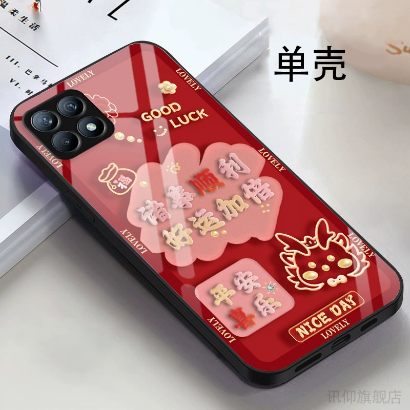 | nameOriginal | Suitable for OPPOReno4se mobile phone case PEAM00 new glass good luck double New Year set HD men's high-value metal paint soft edge goddess cute creative fine hole New Year trendy brand |