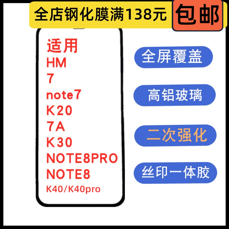 | nameOriginal | Suitable for Redmi 7/note7/K20/7A/K30/NOTE8/NOTE8pro/K40pro tempered film full screen |