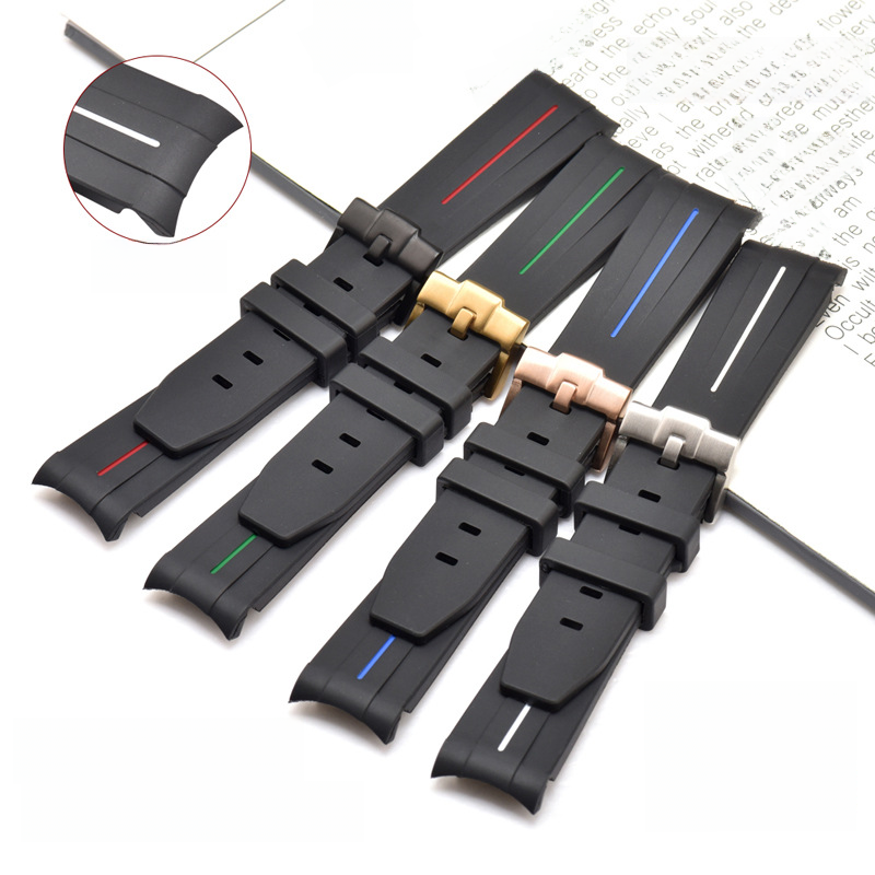 Suitable for Rolex Black and Green Water Ghost Series Silicone Strap High-end TPU Men's Waterproof Watch with Arc Mouth 20mm