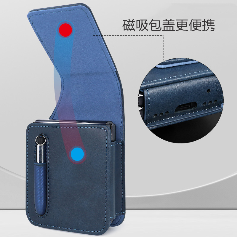 Suitable for Samsung folding screen Flip4/5 mobile phone bag with Pen slot magnetic bag cover belt short mobile phone waist bag