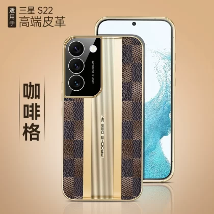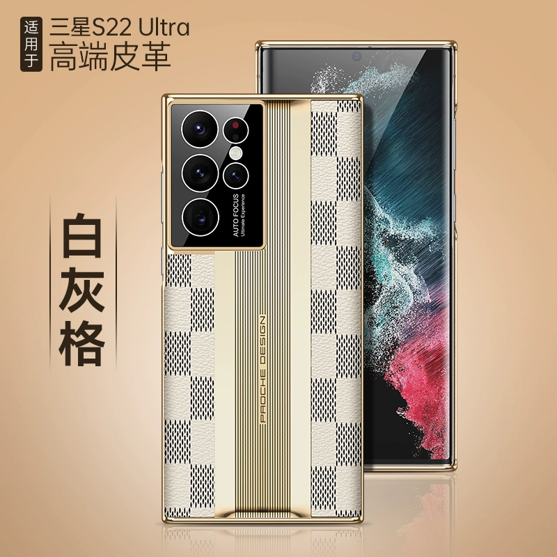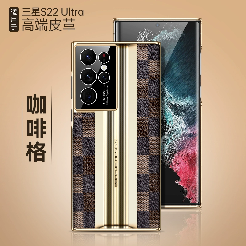 Suitable for Samsung s22ultra mobile phone case, genuine leather s22+, supercar plaid pattern, s22pro, ultra-thin electroplated edge, hard s22plus protective cover, lens, all-inclusive, big-name fashionable personality