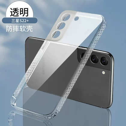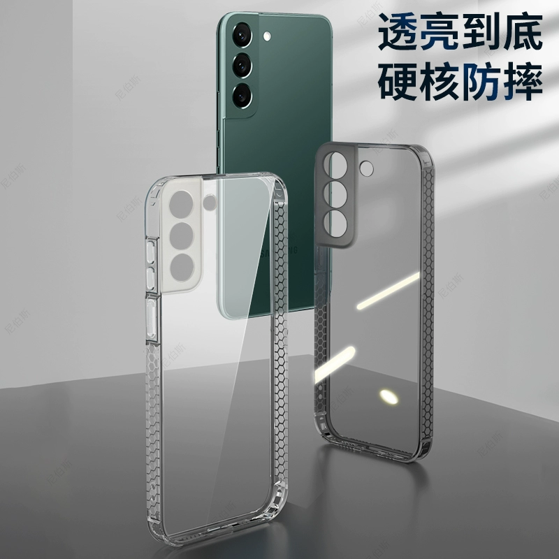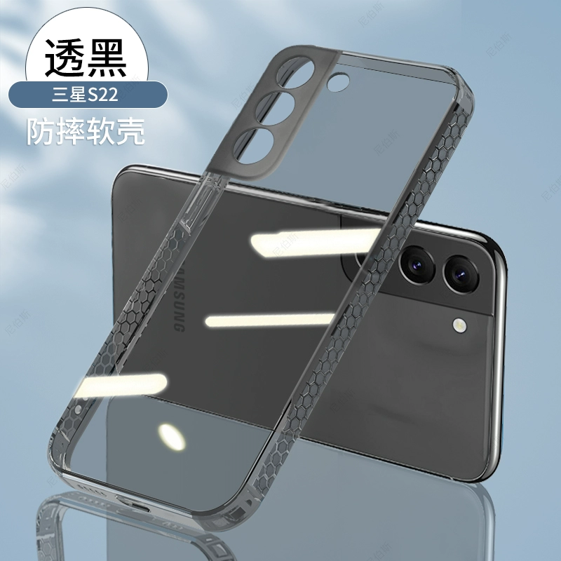 Suitable for Samsung S22ultra mobile phone case, ultra-thin anti-fall transparent s23+ protective cover, new anti-slip soft shell for men 24, advanced bare metal feel, transparent black, simple business all-inclusive frame, popular model for men and women