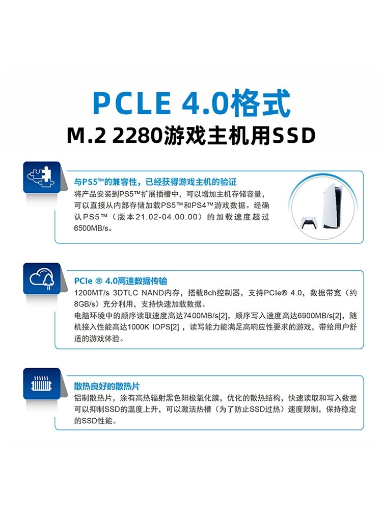 | nameOriginal | Suitable for Sony PS5SSD solid state drive 2T game console PCie40 solid state SSD hard drive M.2 format 1T |