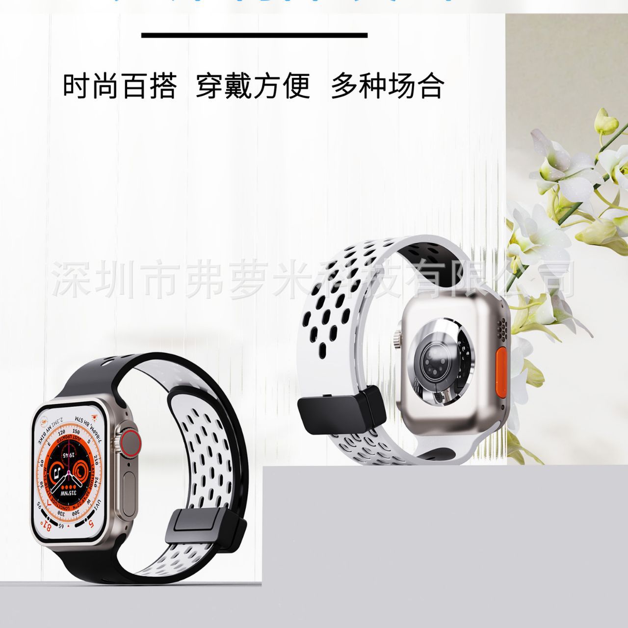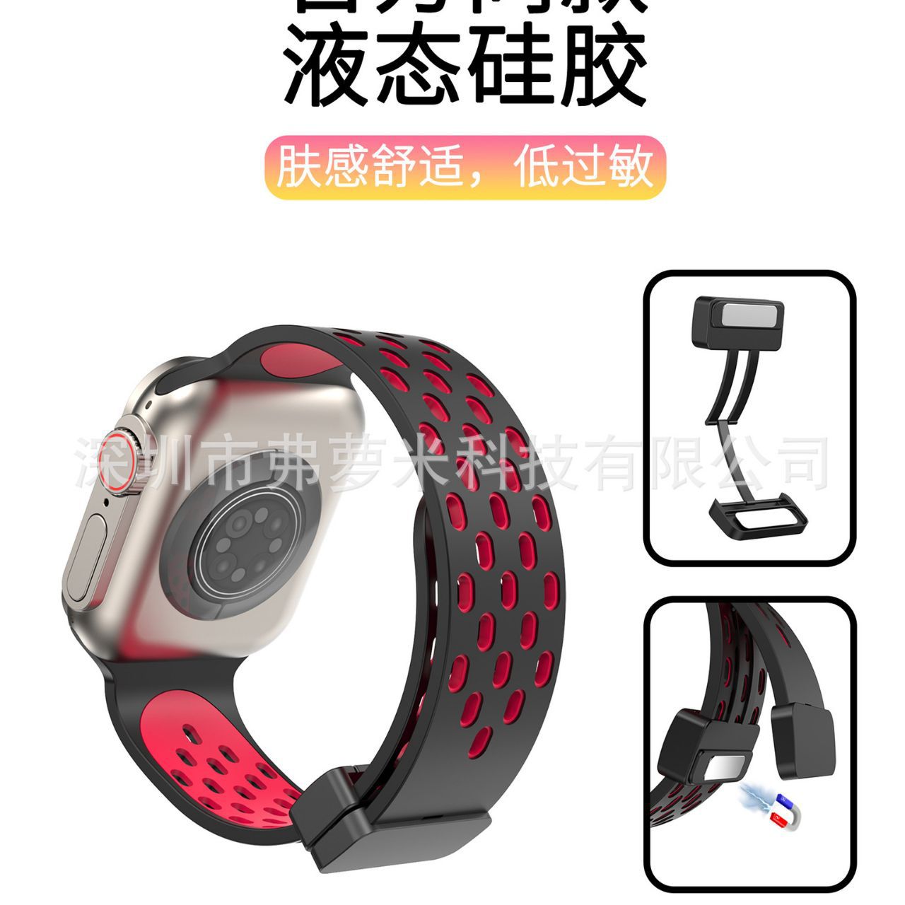 | nameOriginal | Suitable for ultra breathable two-color hole silicone strap Apple Watch universal folding magnetic buckle wristband |