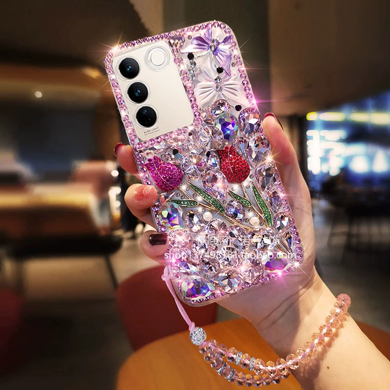 Suitable for vivoS16 mobile phone case S18 flash diamond Y100 full diamond Y35 pink diamond Xnote rhinestone S17t female model Y78+ luxury S5 female model 11 new S7 flash diamond iQOOz6 rose S16E