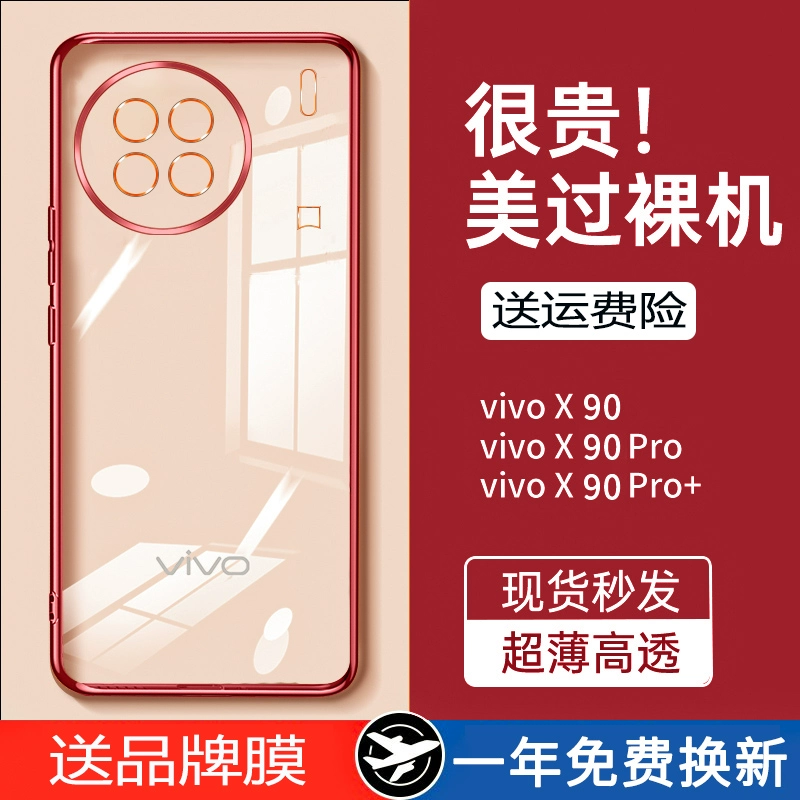 Suitable for vivox90pro mobile phone case new original trendy silicone anti-fall transparent all-inclusive X90s mobile phone case pro+ curved screen simple protective cover