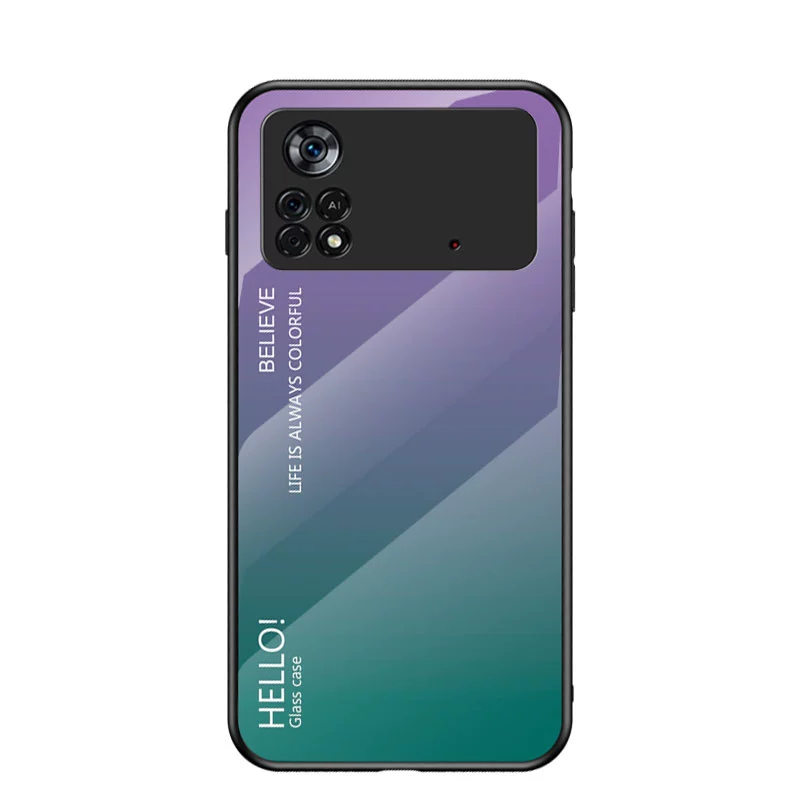 Suitable for Xiaomi pocom4pro mobile phone case mi all-inclusive anti-fall 4g protective case poco painted glass m4por internet celebrity gradient xiaomi men’s and women’s 4G version shell m4p silicone por