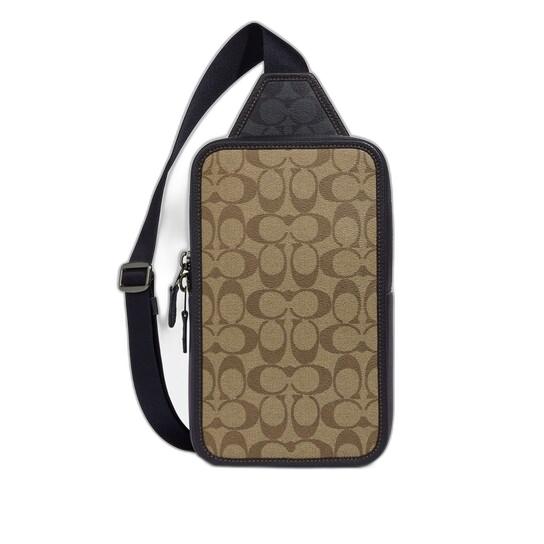 This product features a combination of signature coated canvas and refined pebble leather. It has convenient inside zip and multifunction pockets, and a zip closure with fabric lining. The shoulder strap is adjustable for crossbody wear and can be clipped on either the left or right side. The dimensions of the product are 6 1/4″ in length, 10 1/2″ in height, and 2 1/4″ in width. Its style number is C9865.