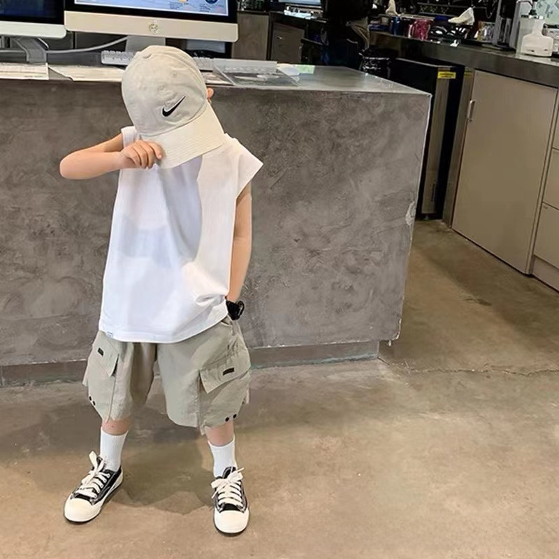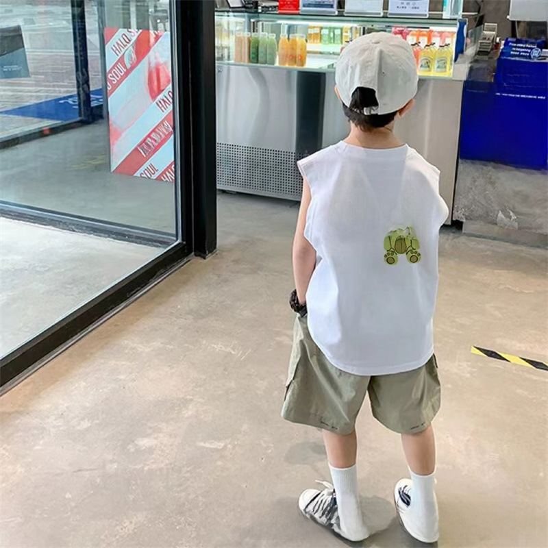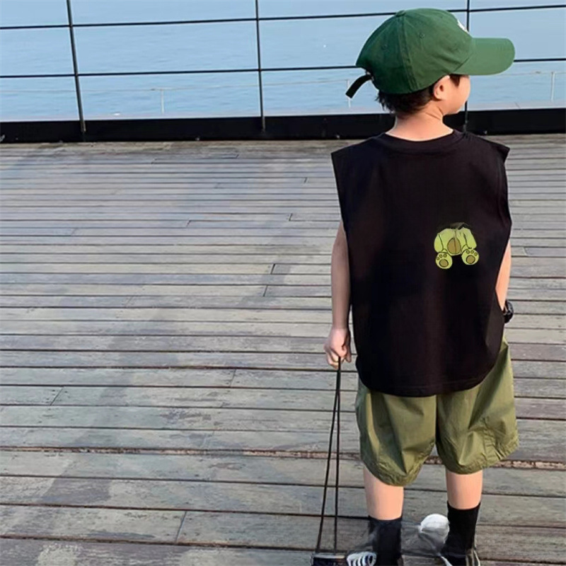 Summer 100% Cotton Boys Sleeveless Vest New Children's Outer Wearing Waistcoat Thin T-Shirt for Large Children