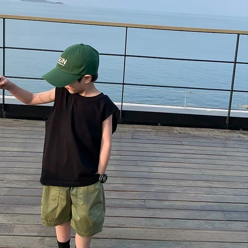 Summer 100% Cotton Boys Sleeveless Vest New Children’s Outer Wearing Waistcoat Thin T-Shirt for Large Children