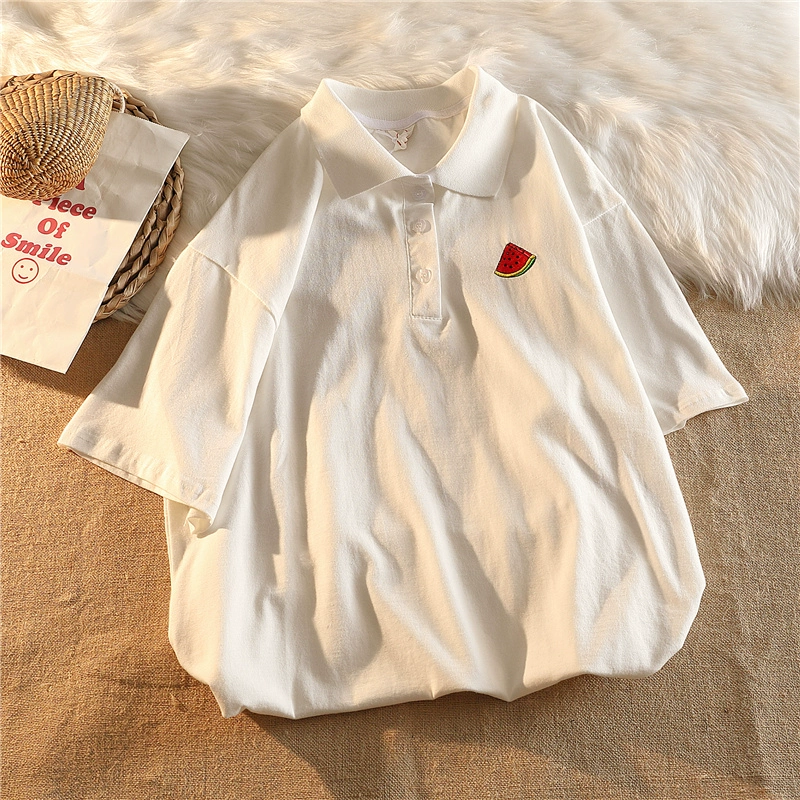 | nameOriginal | Summer 2023 new style right shoulder short-sleeved T-shirt women's salt polo shirt T-shirt women's summer half-sleeved top thin section |
