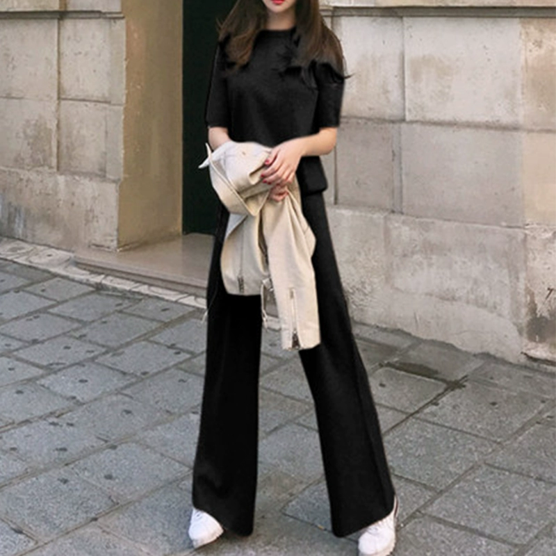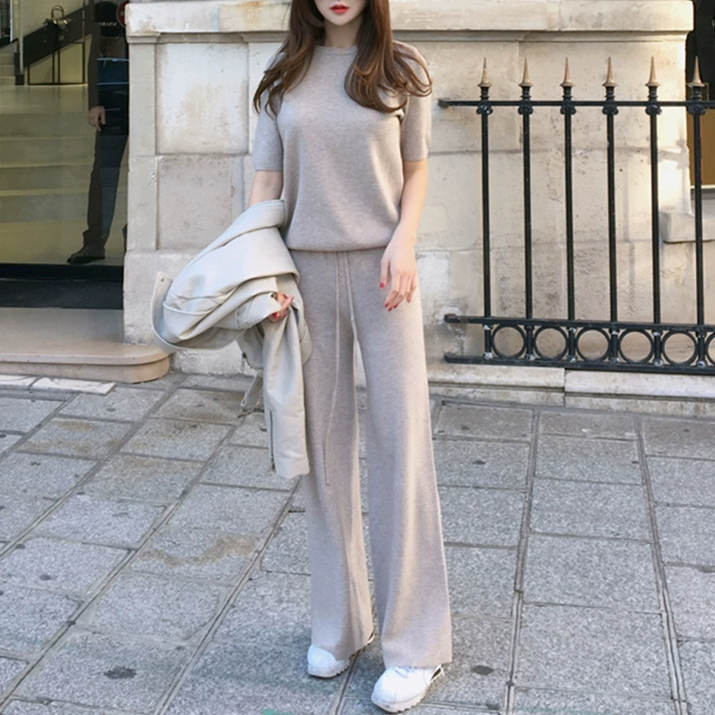 | nameOriginal | Summer 2023 new suit fashionable two-piece European ice silk knitted top wide-leg pants casual sports suit |