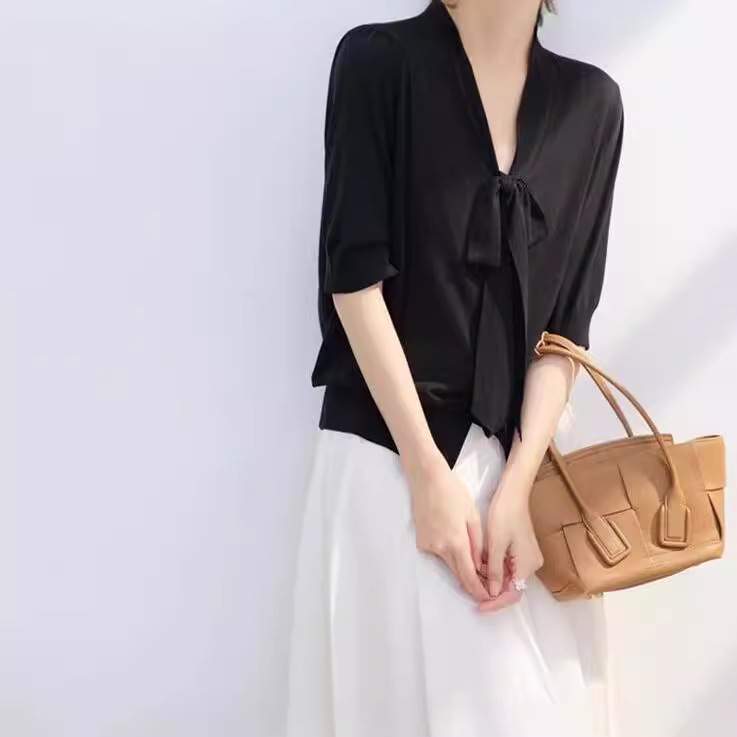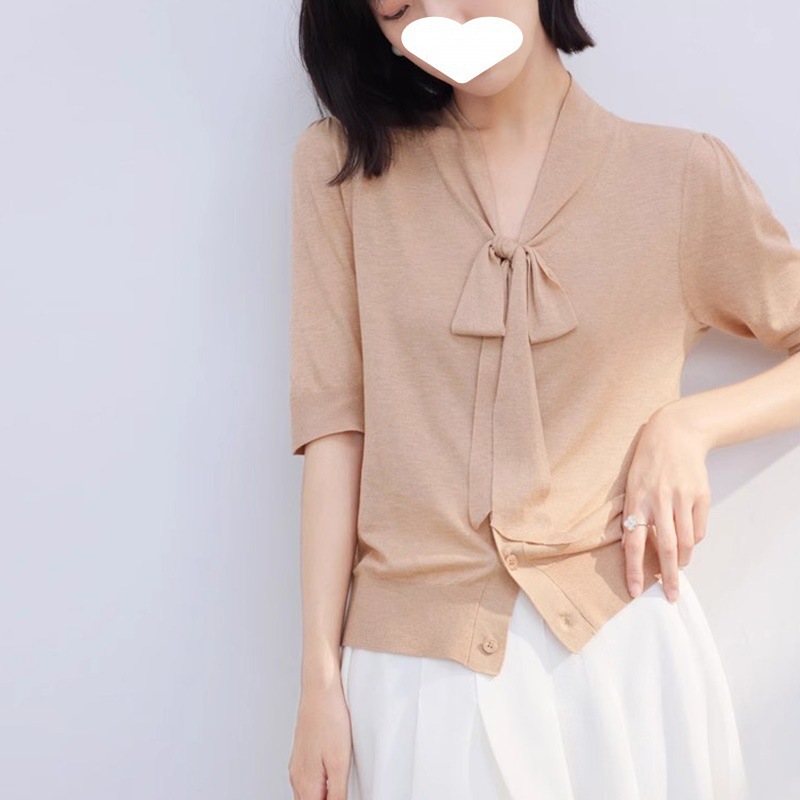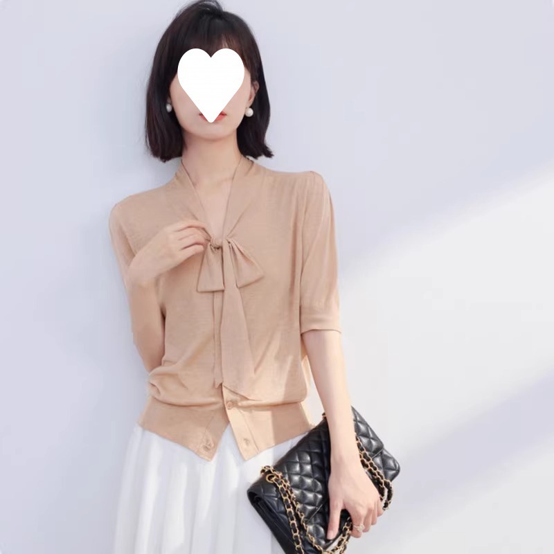 | nameOriginal | Summer 2024 Bow Ribbon Solid Color Straight Tencel Knitted Cardigan Women's Thin Elegant All-match Top Women's Fashion |