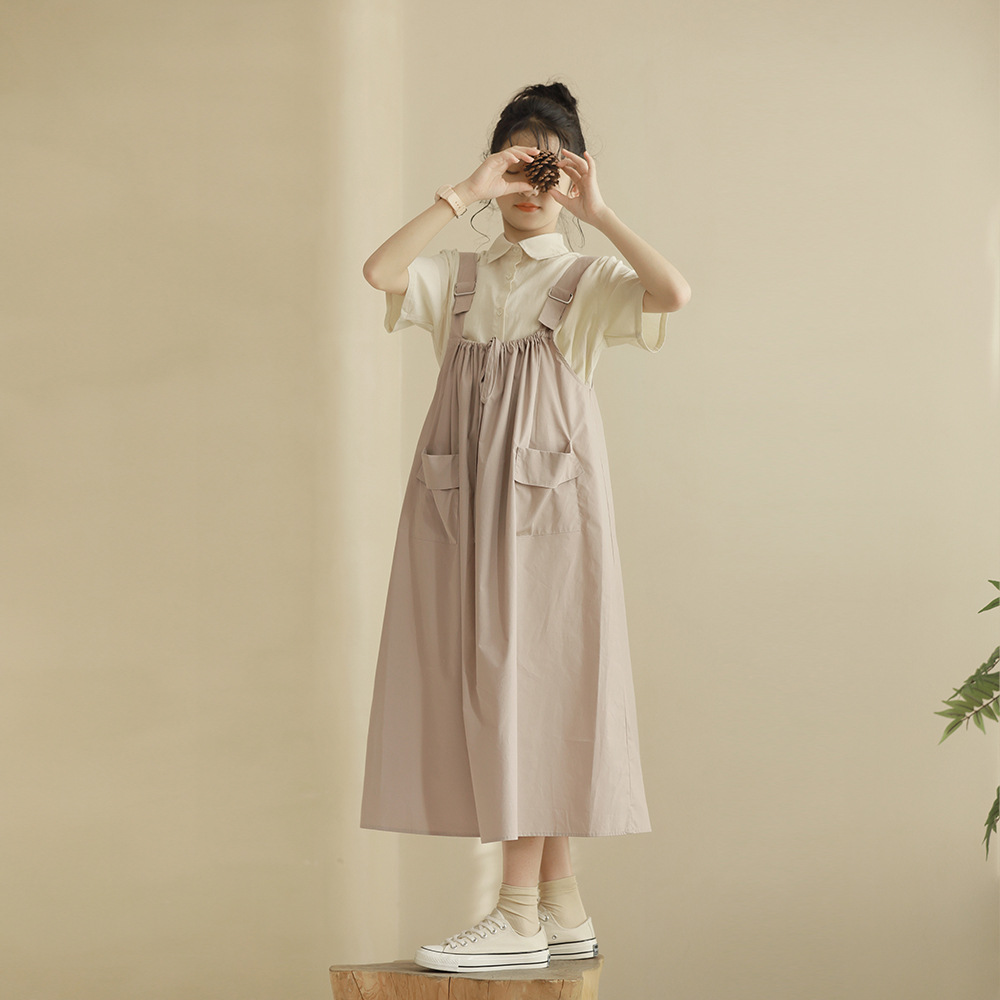 Summer 2024 cuhk girls college style leisure adjustable strap skirt age-reducing slimming parent-child original hair