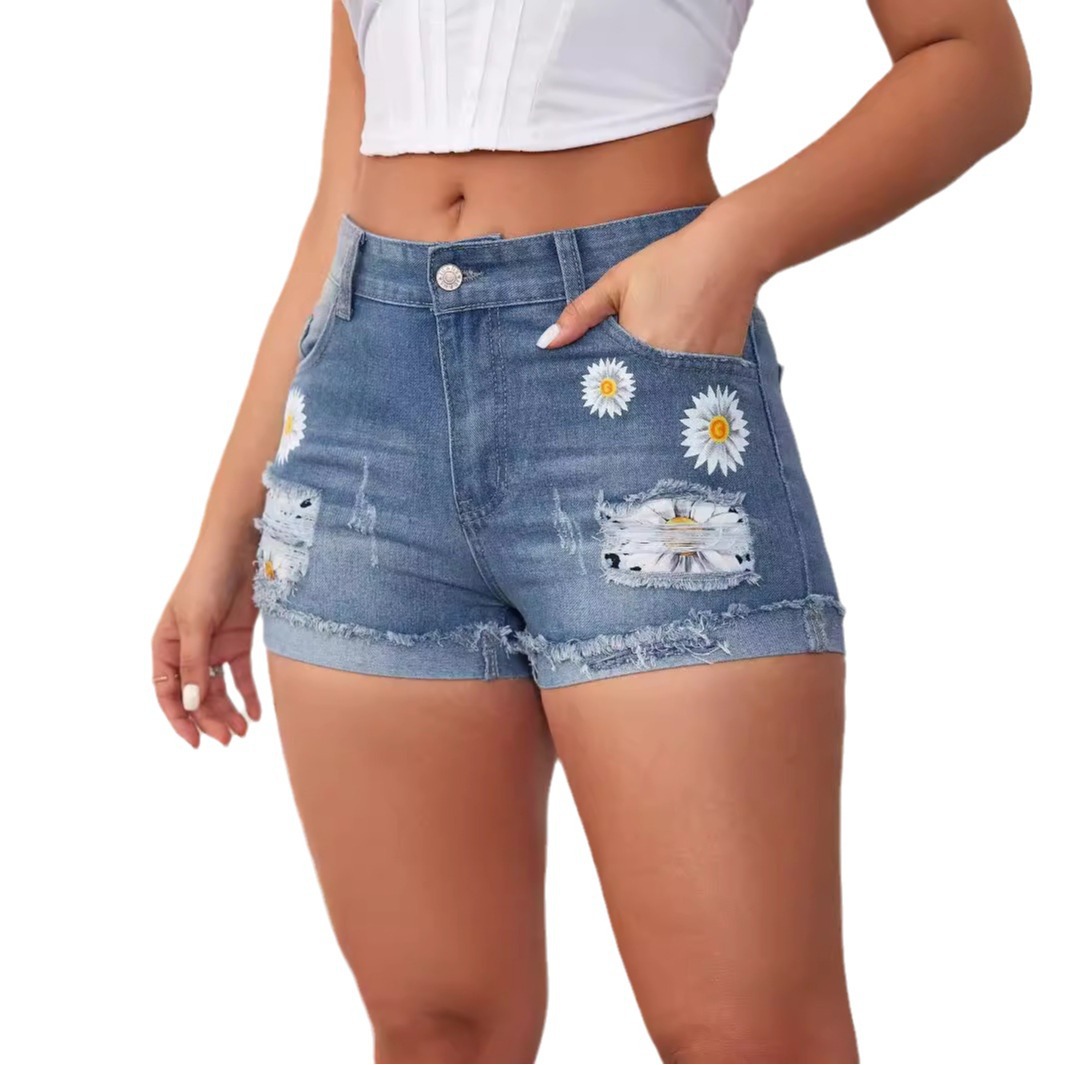| nameOriginal | Summer 2024 ebay amazon wish tassel hole print women's Denim shorts slim-fit rough edge hot pants |