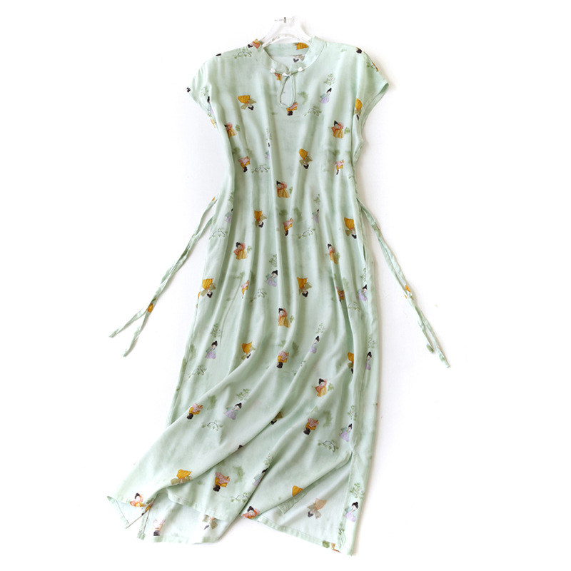 | nameOriginal | Summer 2024 New Arrival Chinese Style Zen Style Modified Cheongsam Women's Cotton Silk Retro Ink Printing Over-the-knee dress |