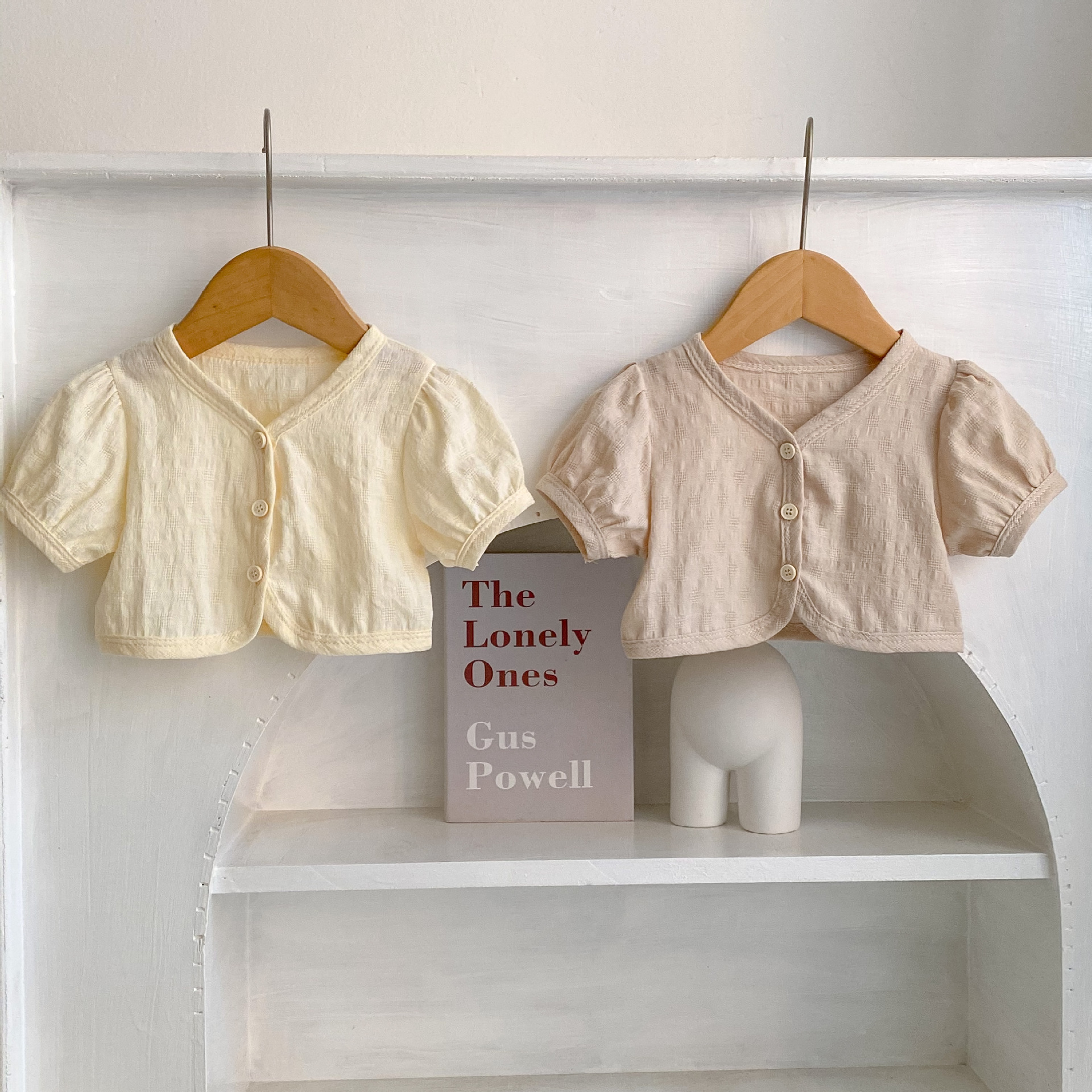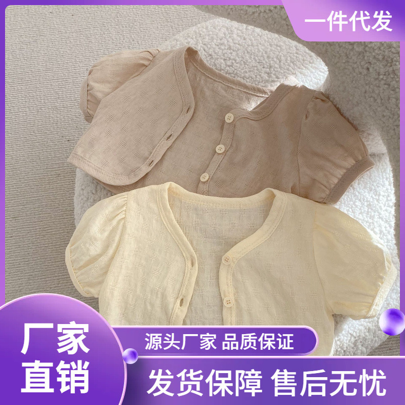 | nameOriginal | Summer 2024 New Baby Girl Baby Color Jacquard Bubble Short Sleeve Coat Short Essential Small Cardigan |