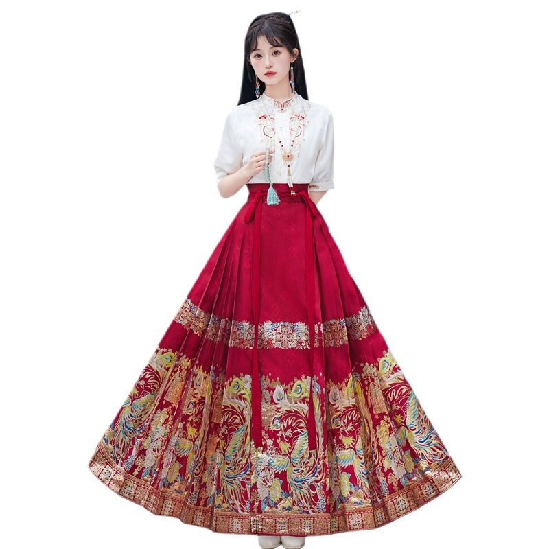 | nameOriginal | Summer 2024 New Chinese Style National Style Simple Embroidered Short Sleeve Top High-end One-piece Woven Gold Horse Face Dress Set for Women |