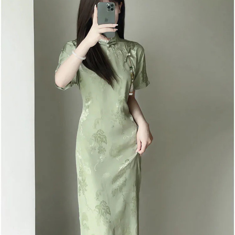 | nameOriginal | Summer 2024 New Chinese Style Republic of China Style Big Miss Green Improved Cheongsam Young Girl's Ancient Style Long Dress |
