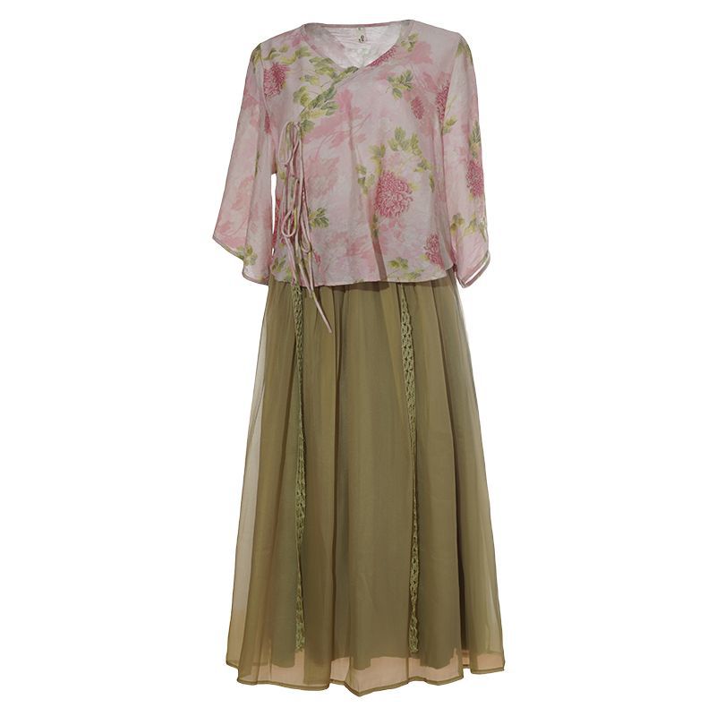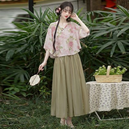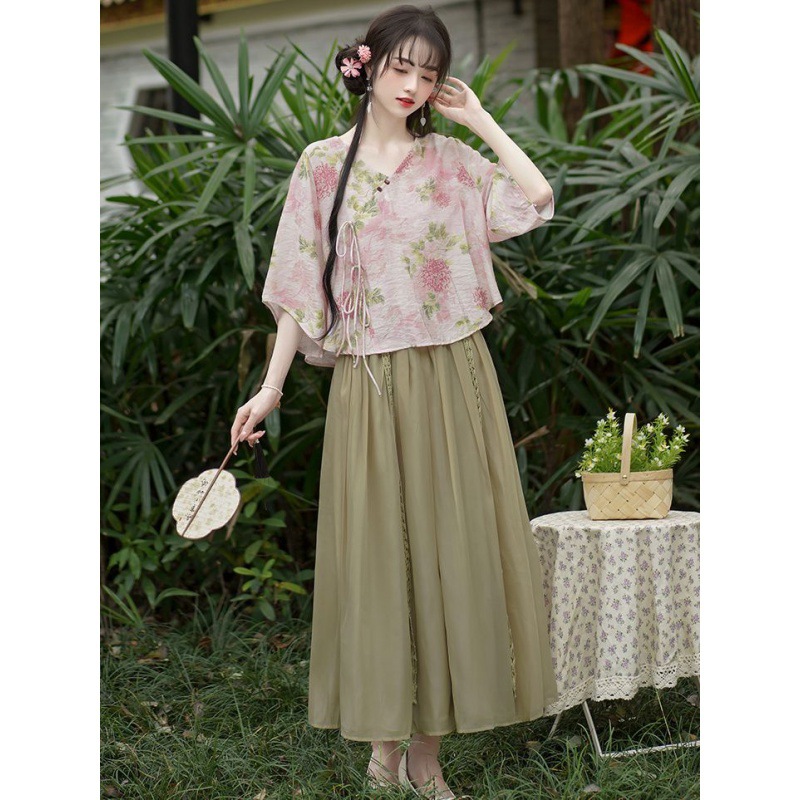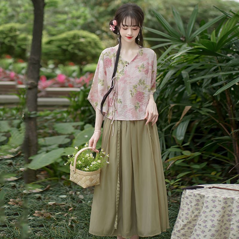 | nameOriginal | Summer 2024 New Chinese Style Retro Chinese Element Printing Modified Tang Suit Hanfu Top Skirt Zen Tea Clothes suit |