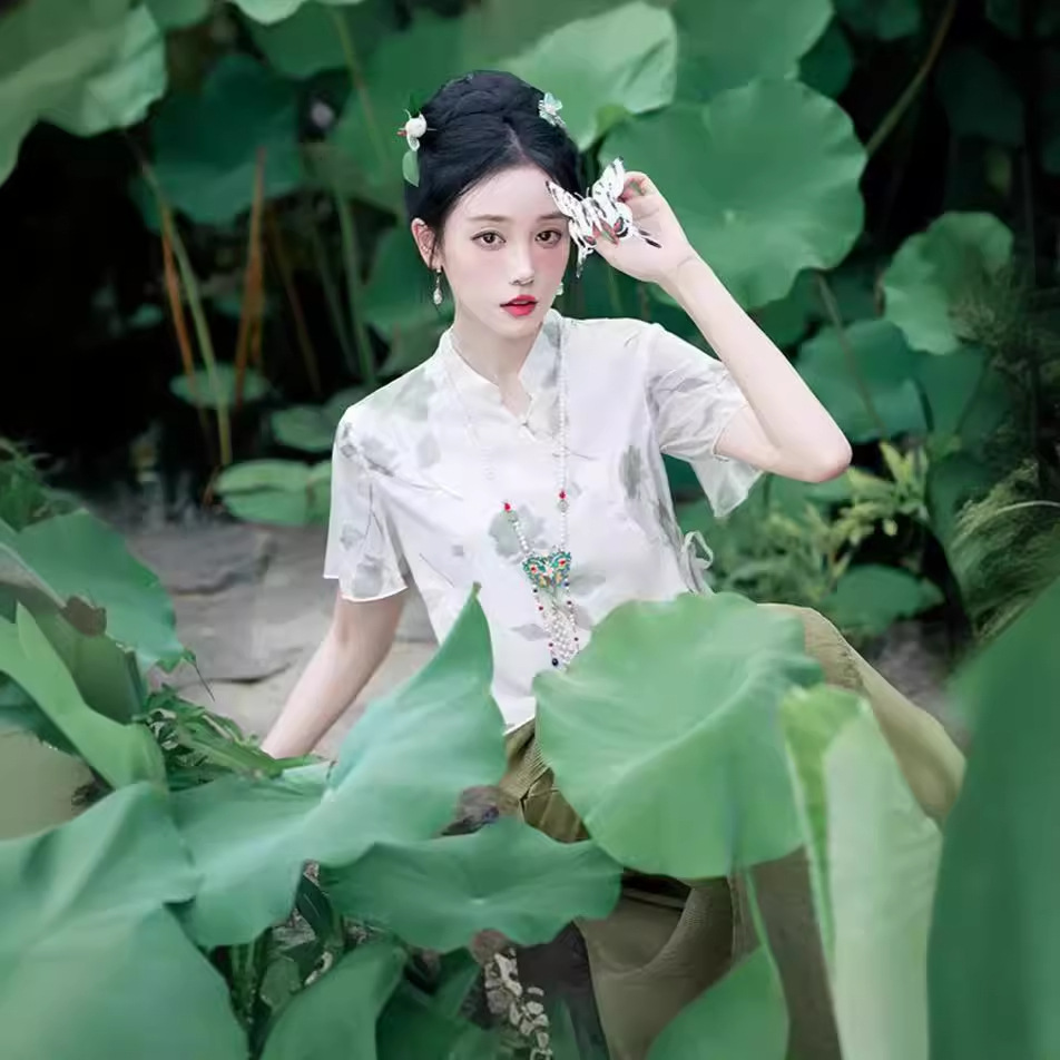 | nameOriginal | Summer 2024 New Chinese Style Retro Modified Hanfu Tang Coat Top Han Element Elegant Wide Leg Pants Zen Tea Suit |