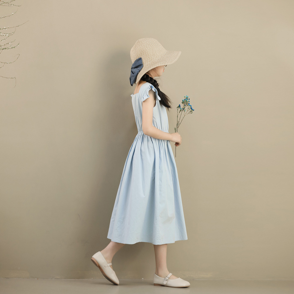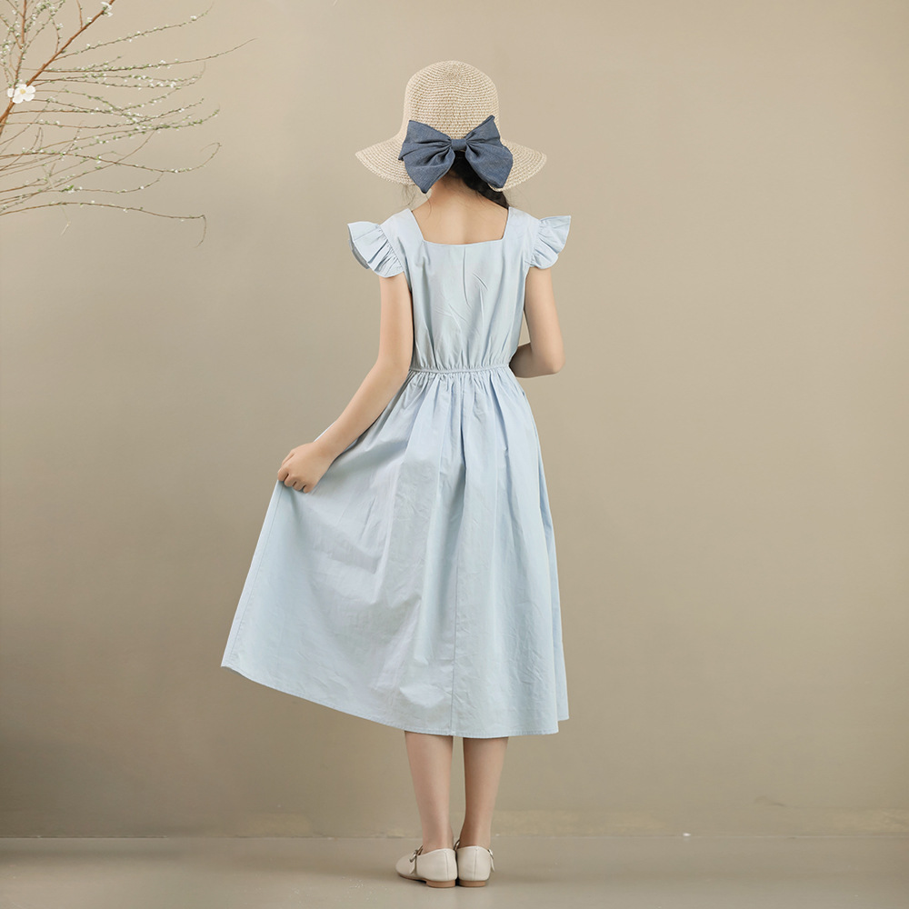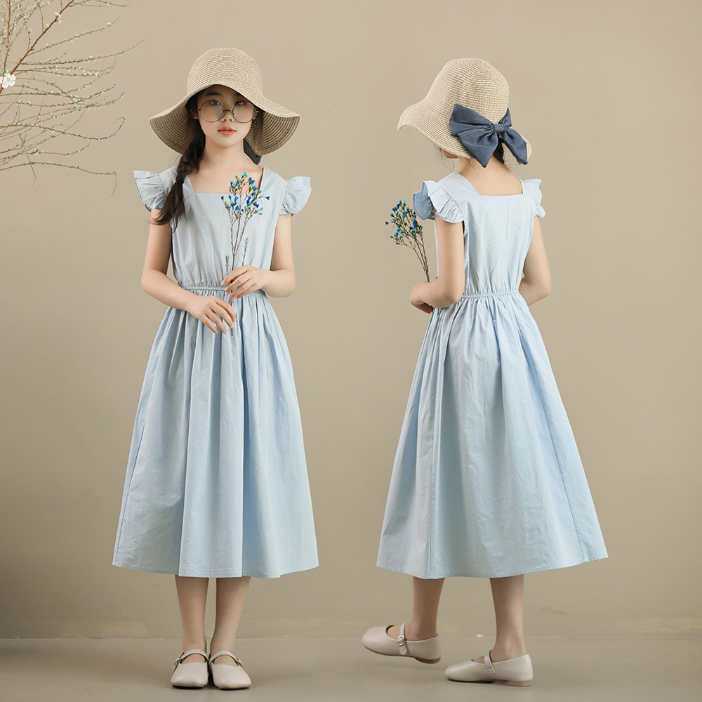 | nameOriginal | Summer 2024 New French Style Large and Large Girls' Long Dress Princess Tight Waist Blue High-end Children's Dress Color Trace Sense Niche |
