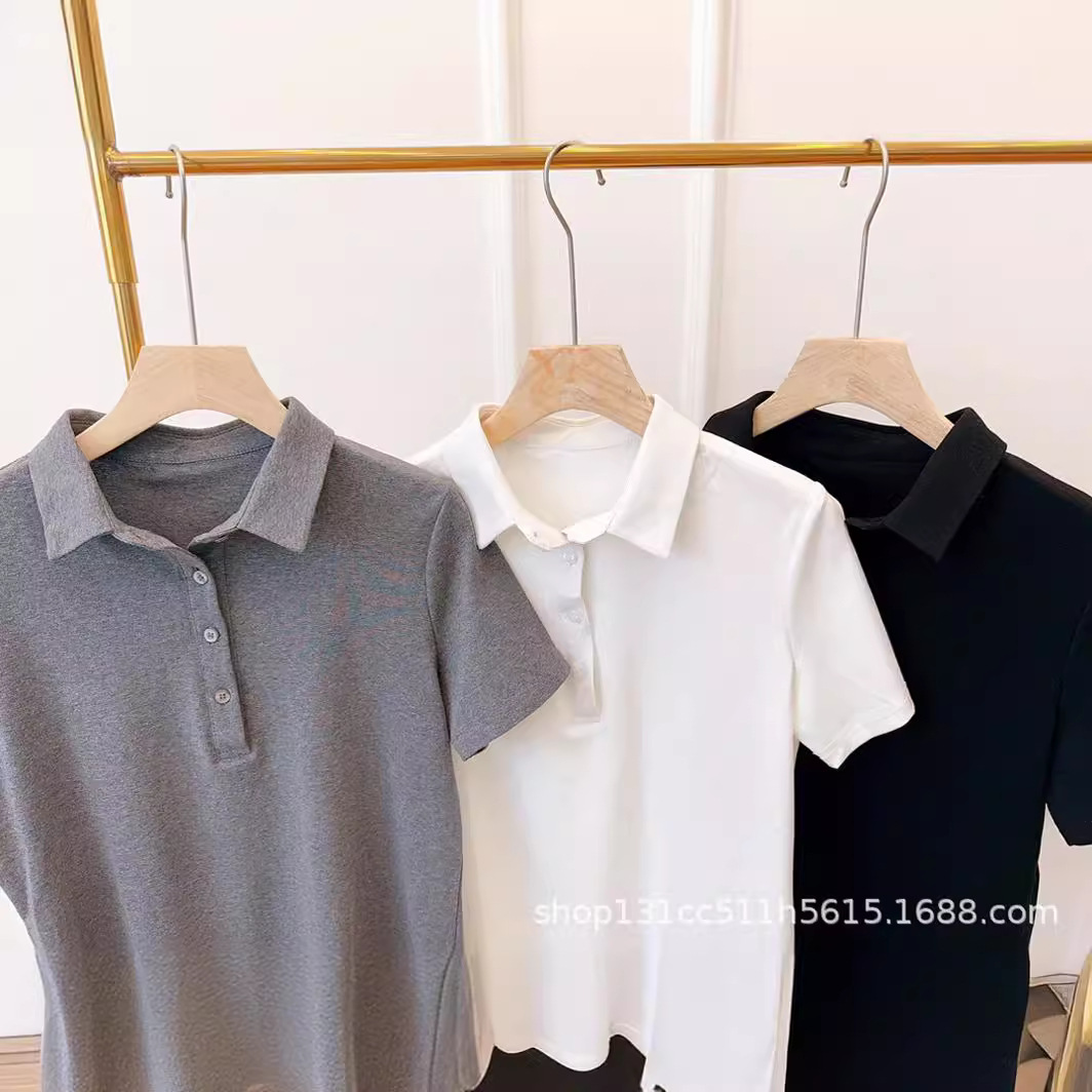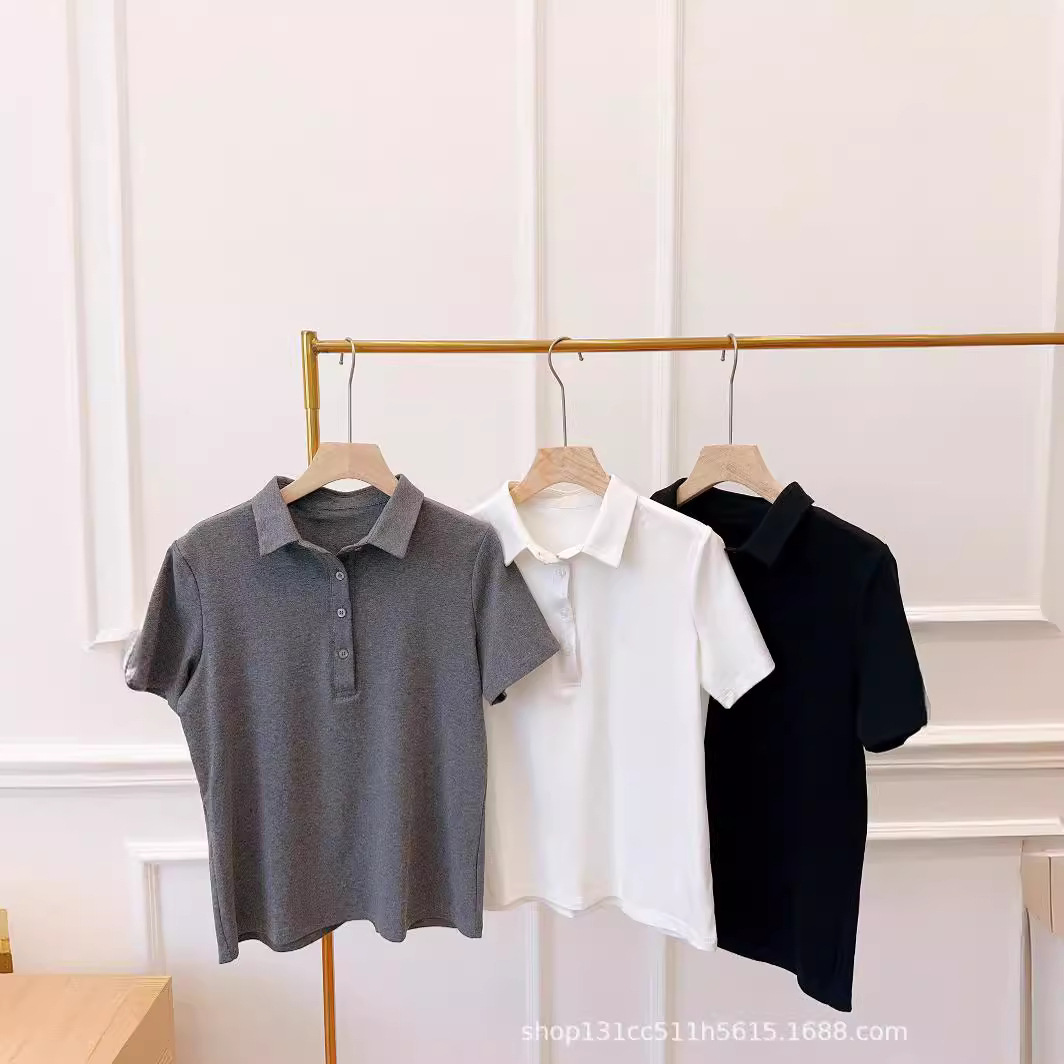 | nameOriginal | Summer 2024 New Korean Loose Slimming Elegant Solid Color Button Comfortable Polo Lel Short-sleeved T-shirt Top |