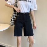 Summer 2024 New Korean Style Slim Look High Waist Denim Pants Female Student Loose All-match Straight Shorts