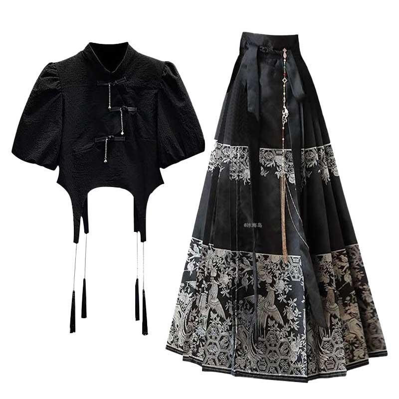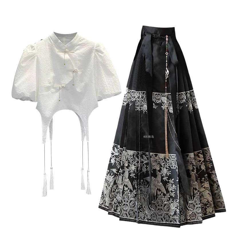 | nameOriginal | Summer 2024 New New Chinese Style Hanfu Top Design Sense Wear Slimming Flesh Covering National Style Horse Face Skirt Two-piece Set |