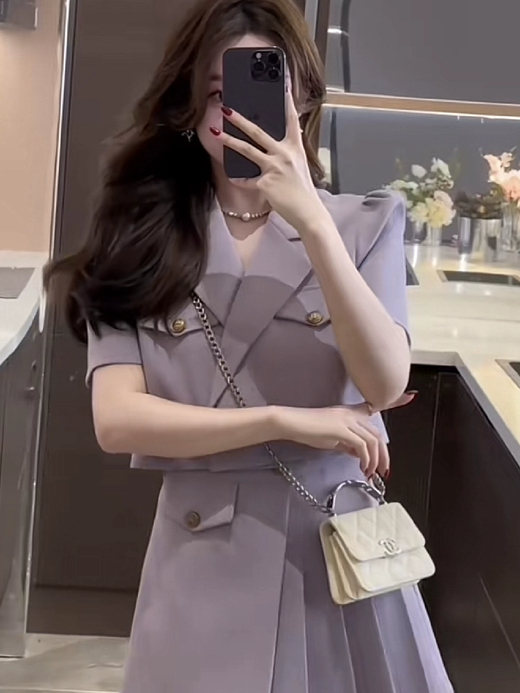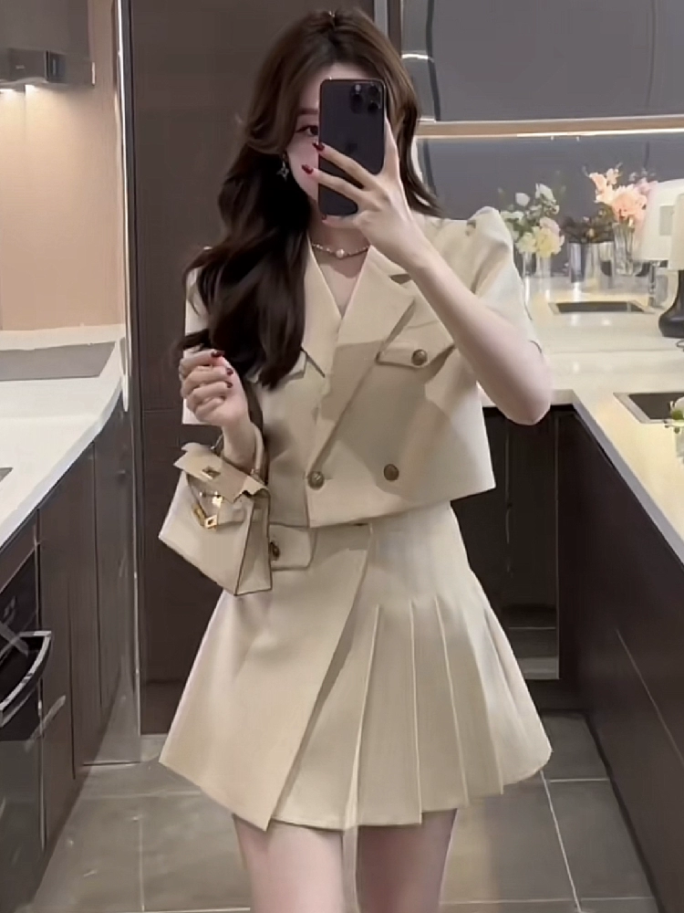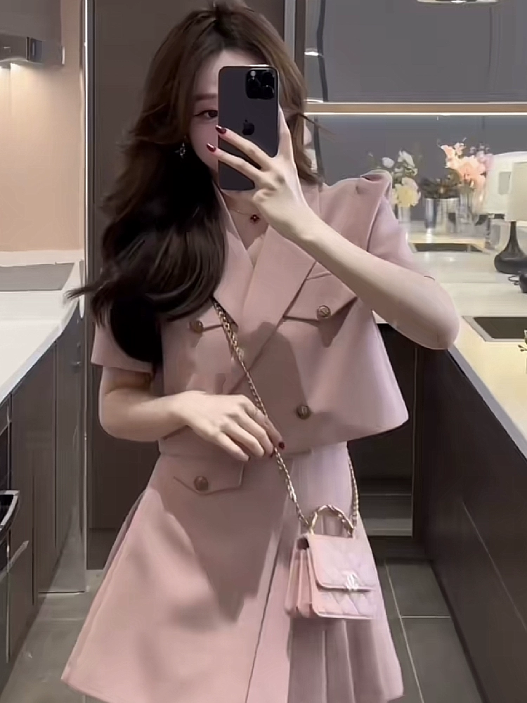 | nameOriginal | Summer 2024 new suit skirt Xiaoxiang style goddess style short suit top pleated skirt two-piece suit |