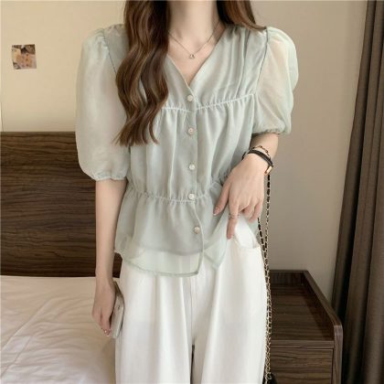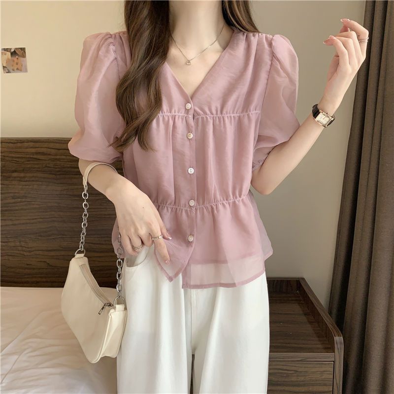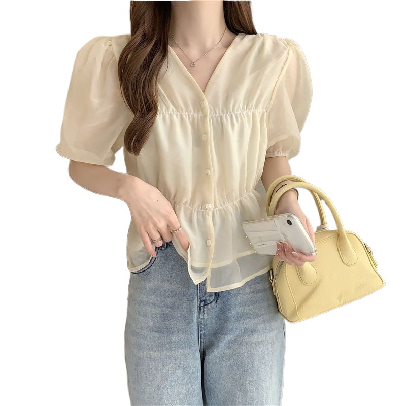 | nameOriginal | Summer 2024 New Waisted Collar Slimming Short-sleeved Shirt Western Style Women's Design Sense Niche French Unique Top |