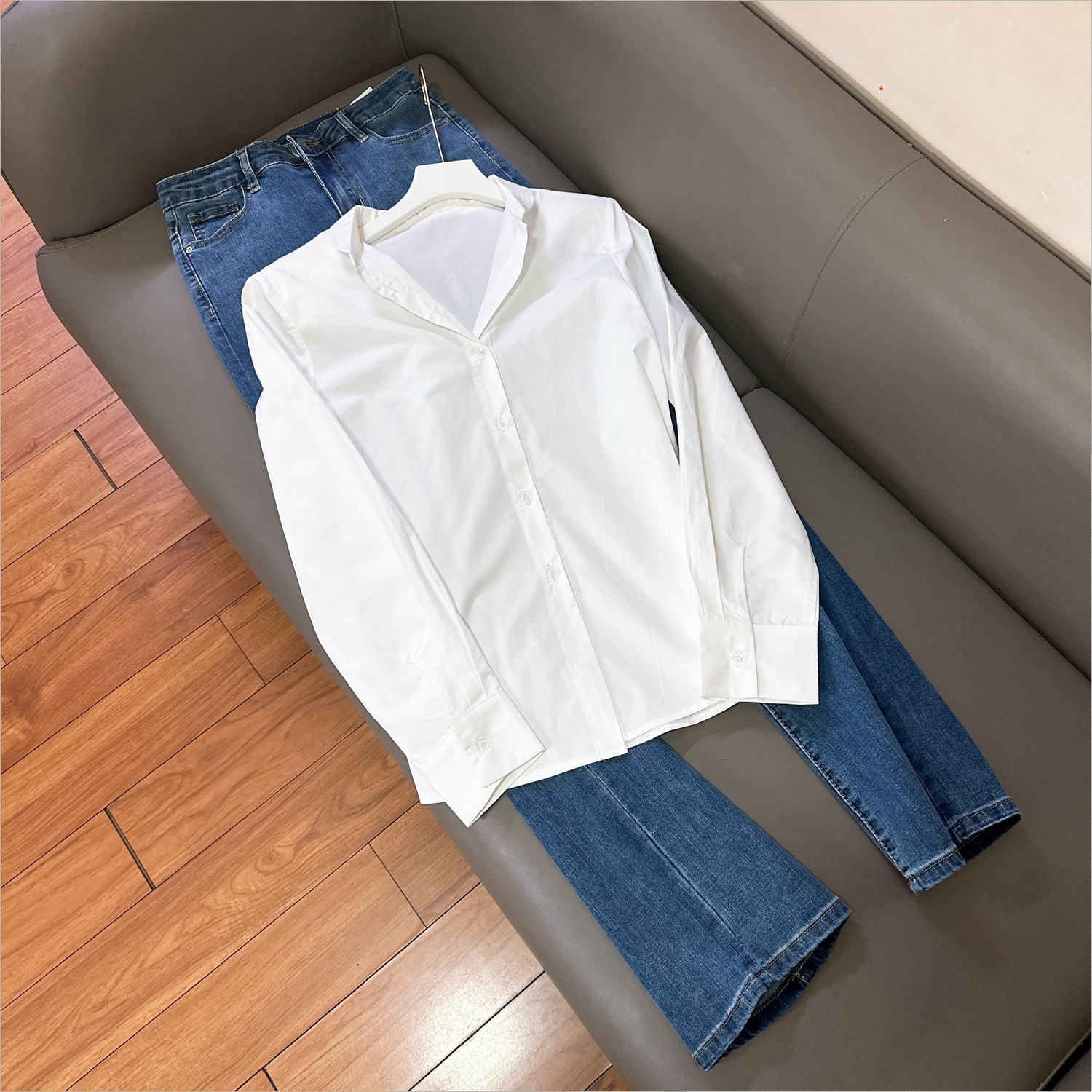 | nameOriginal | Summer 2024 New Zhao Lusi Same Style Casual Loose V-neck White Long Sleeve Shirt Top Jeans |