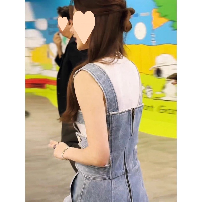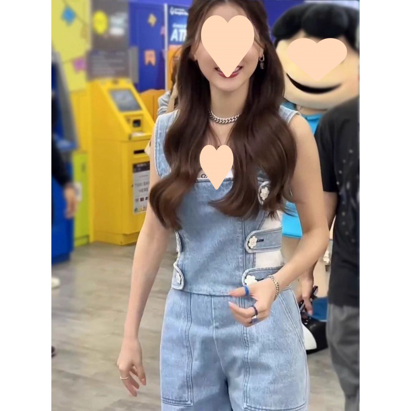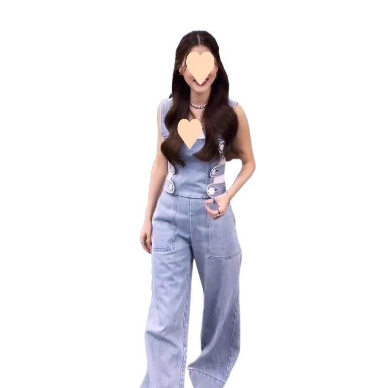 Summer 2024 Simple Style Fashionable Age-reducing Wear Commuter Loose Denim Strap Pants Top Two-piece Set