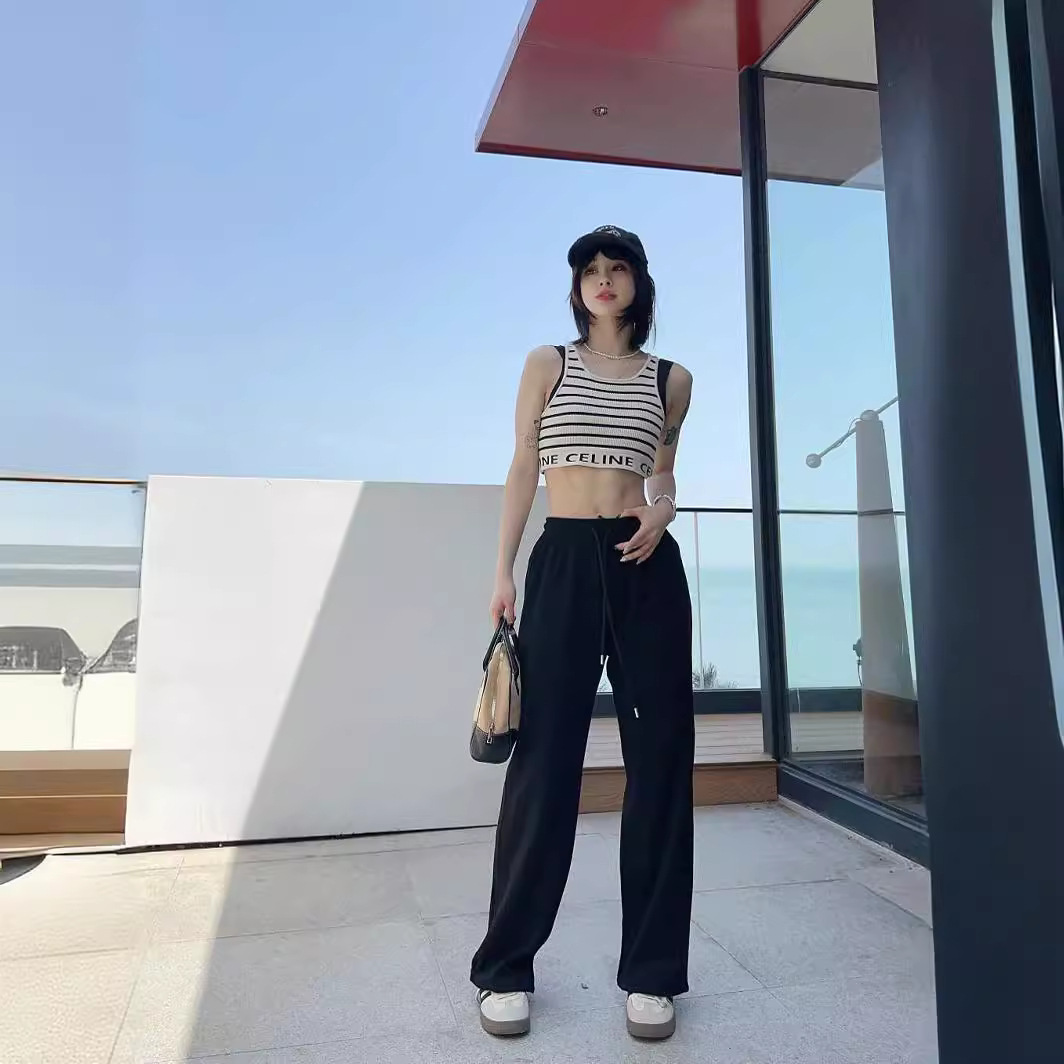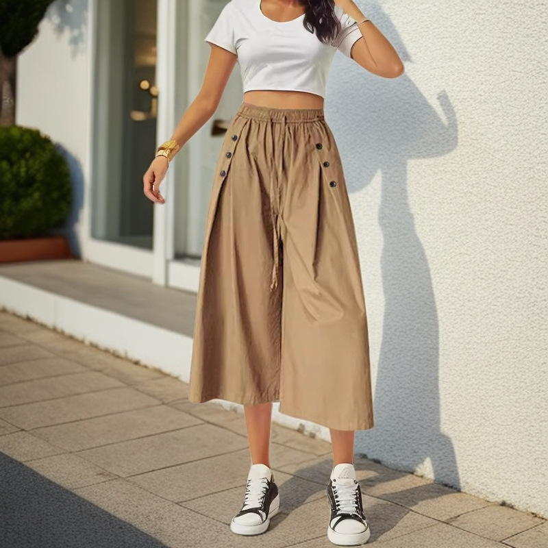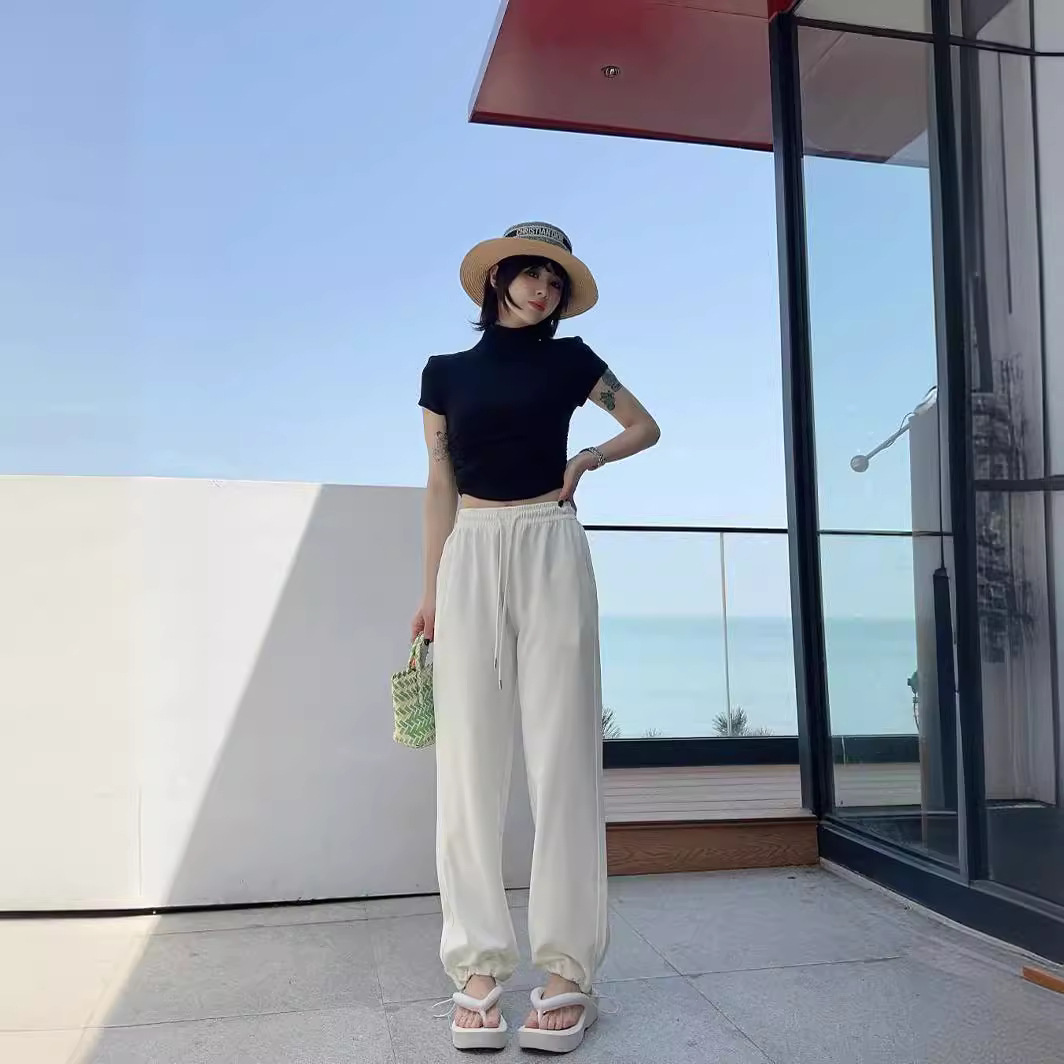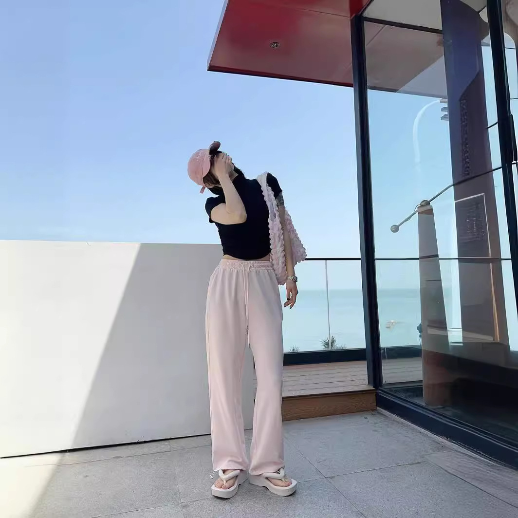 | nameOriginal | Summer 2024 Thin Design Sense Solid Color Stitching Pants Women's Breathable Loose plus size Drawstring Casing Leg Casual Pants |
