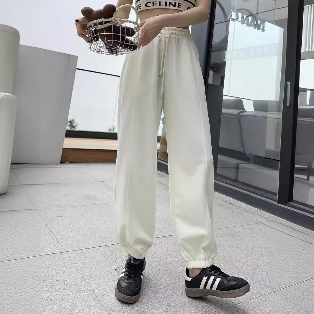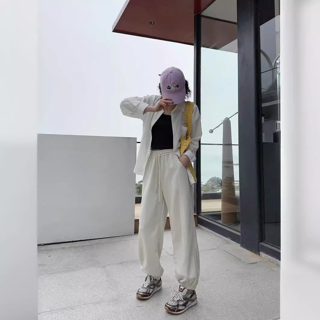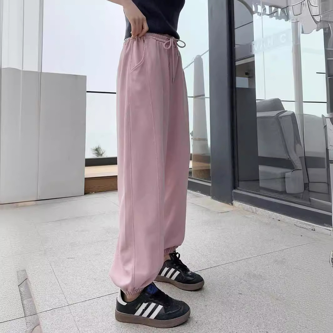 Summer 2024 Thin Design Sense Solid Color Stitching Pants Women’s Refreshing Breathable Loose plus size Fashionable Cool Nipped Casual Pants