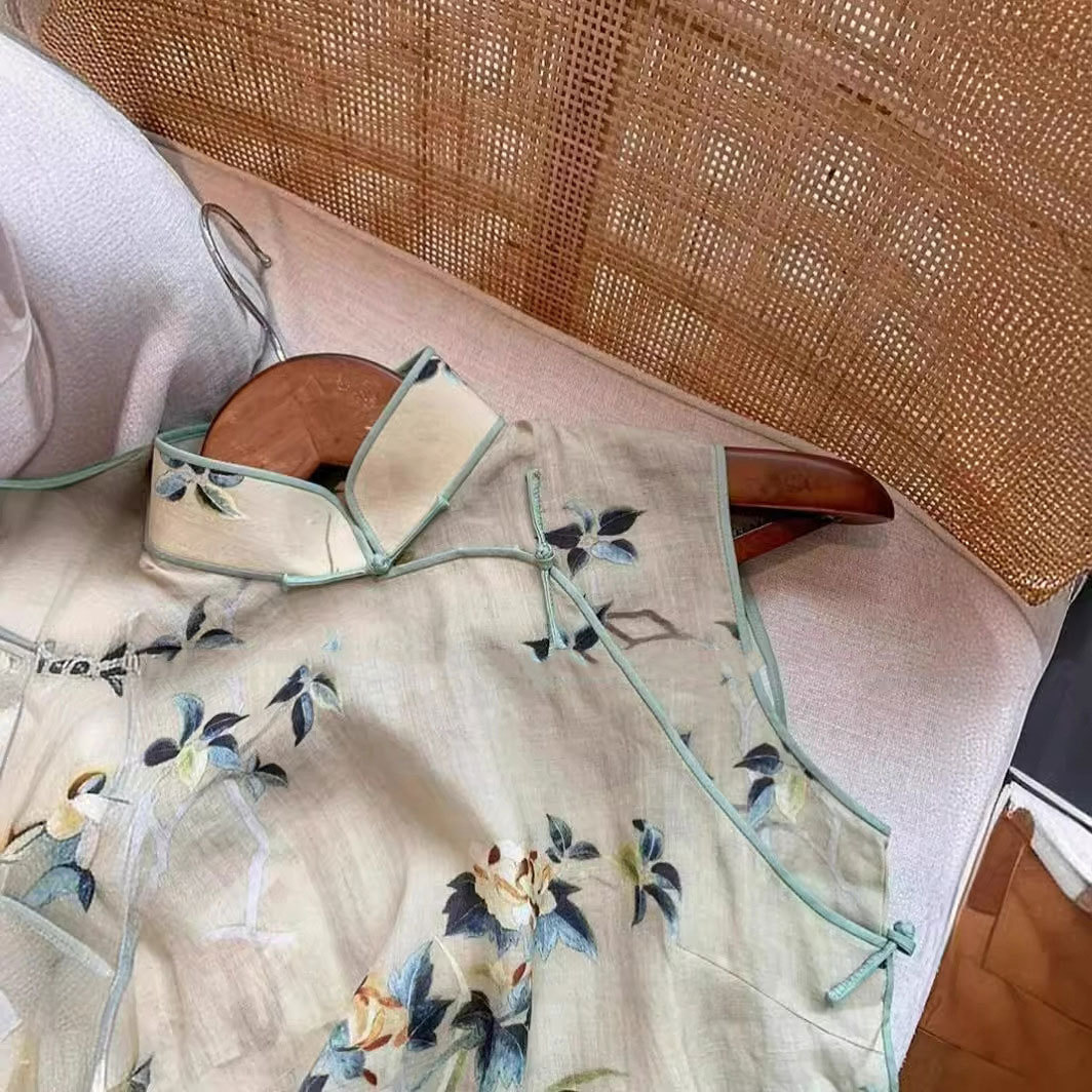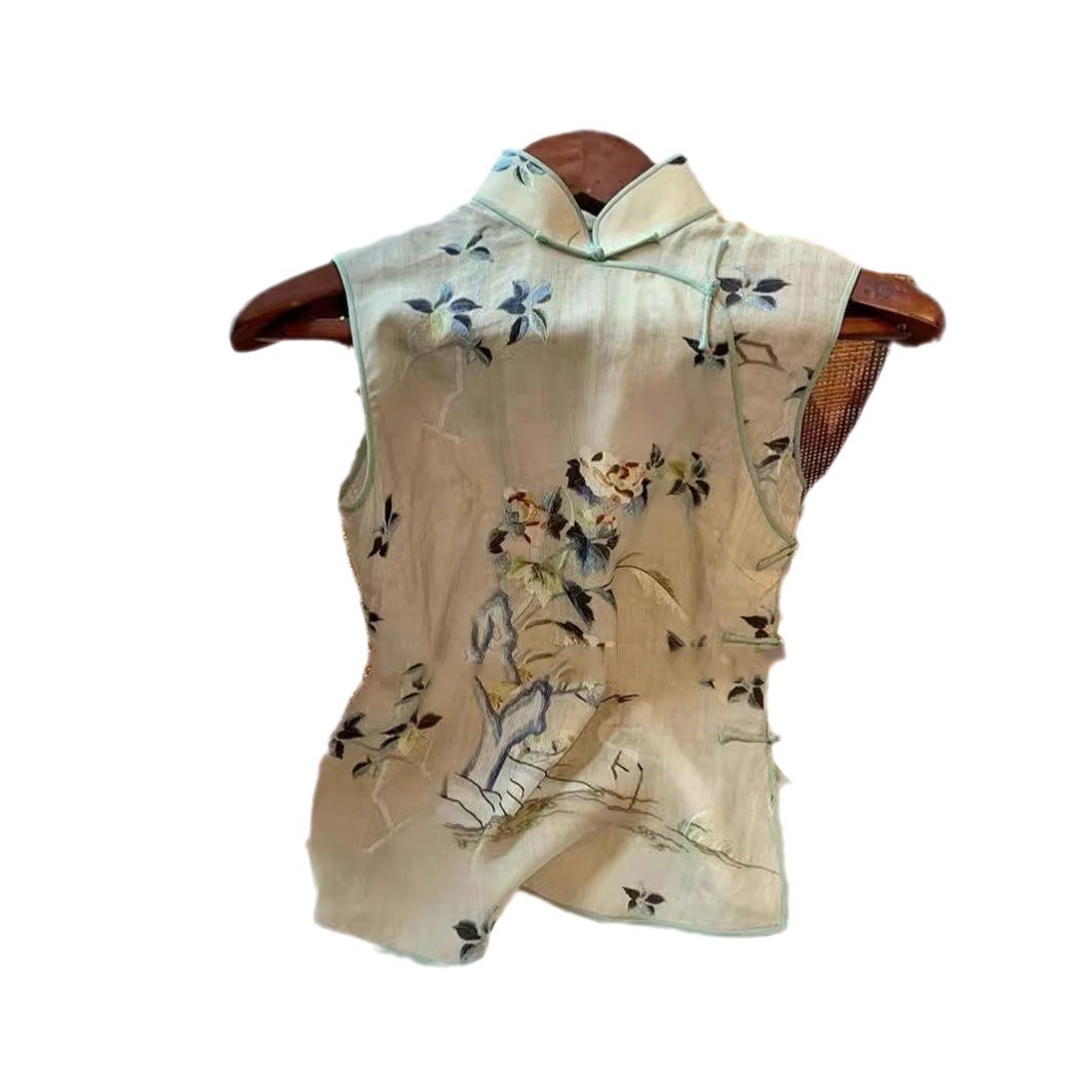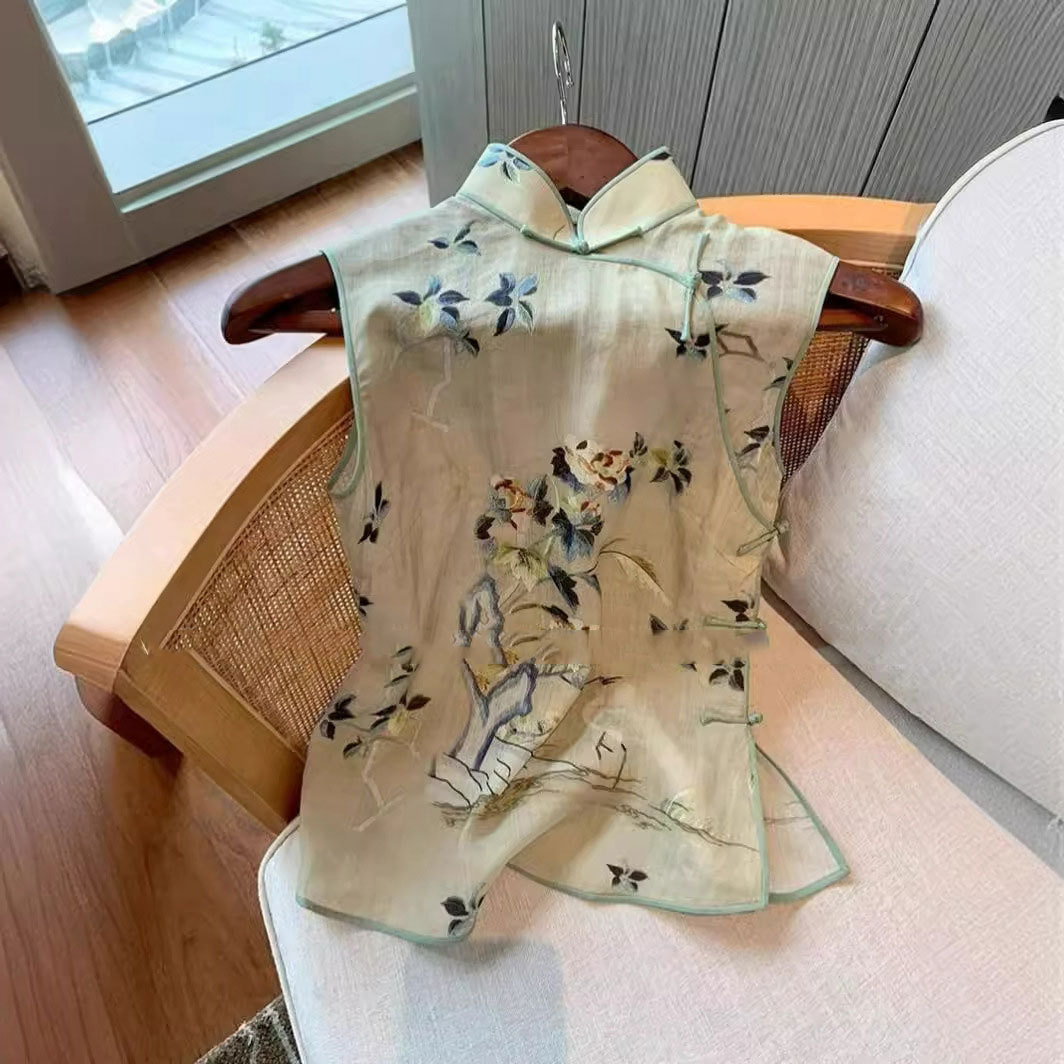 | nameOriginal | Summer 2024 Vintage Republic of China Style Sleeveless Waistcoat New Chinese Fashion Printed Buckle Vest Women's Clothing |