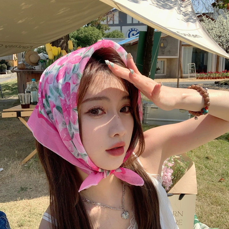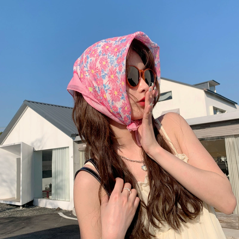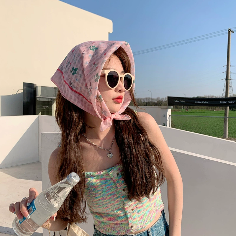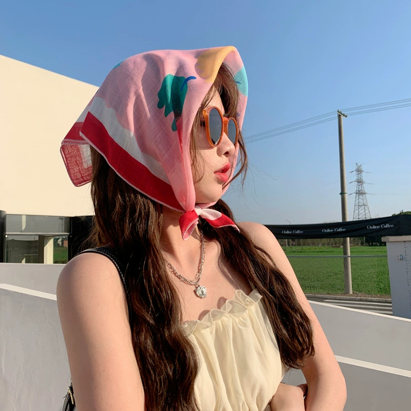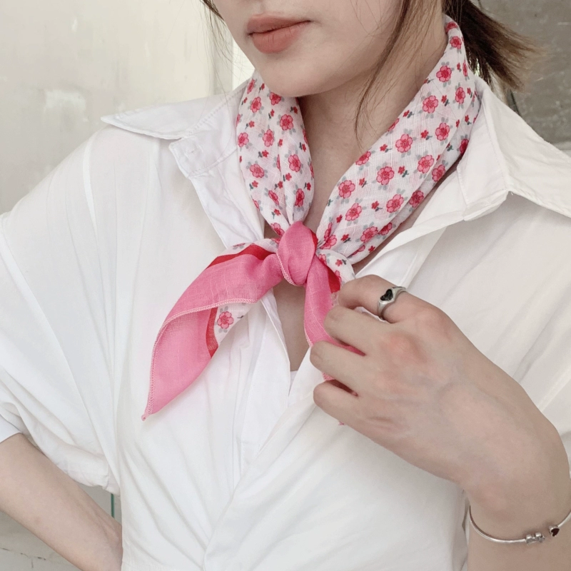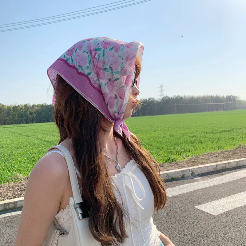 | nameOriginal | Summer 58cm cotton and linen floral floral decorative thin small square scarf for women |