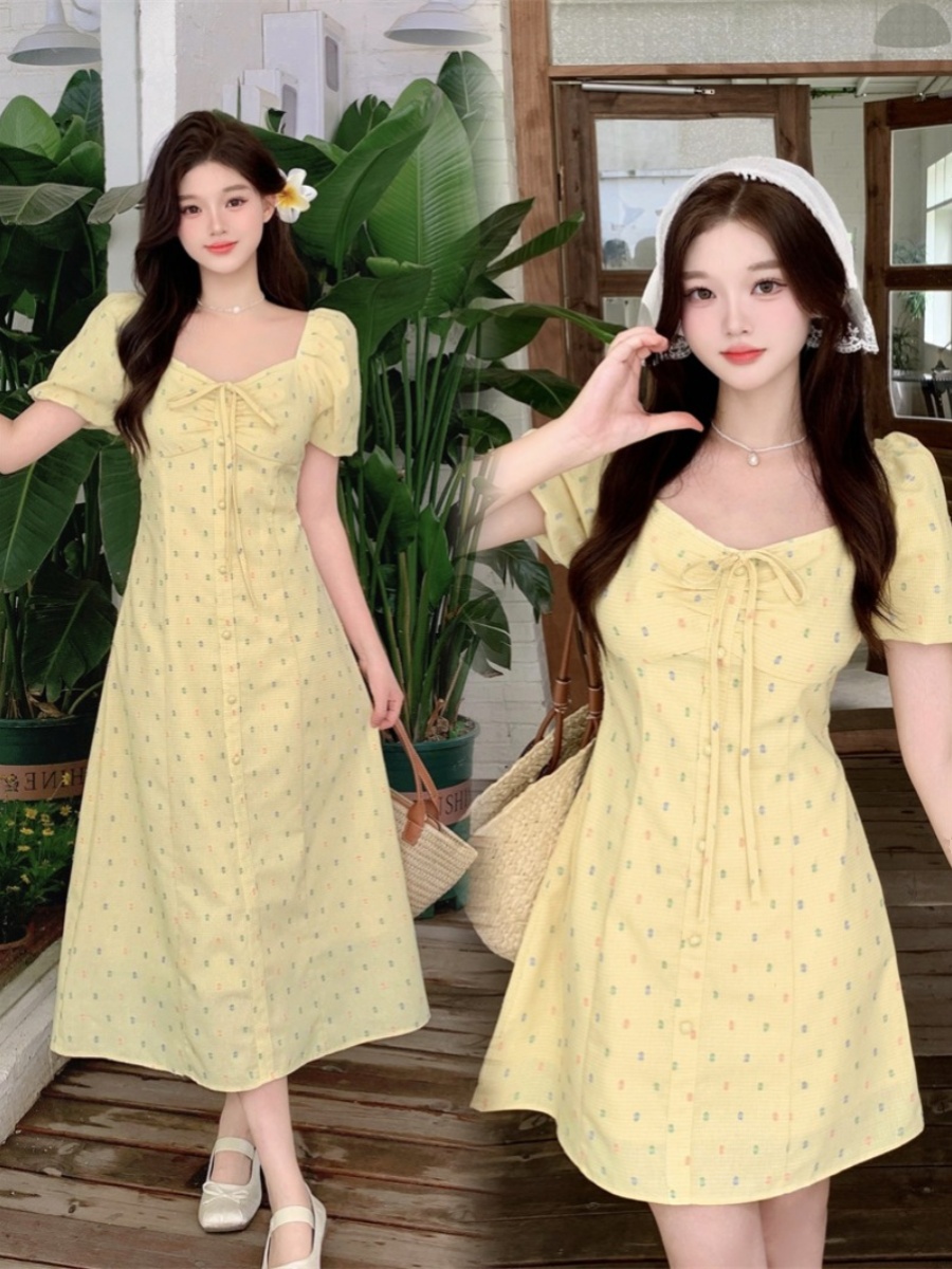 | nameOriginal | Summer A-line fat girl pleated lace-up short-sleeved dress |
