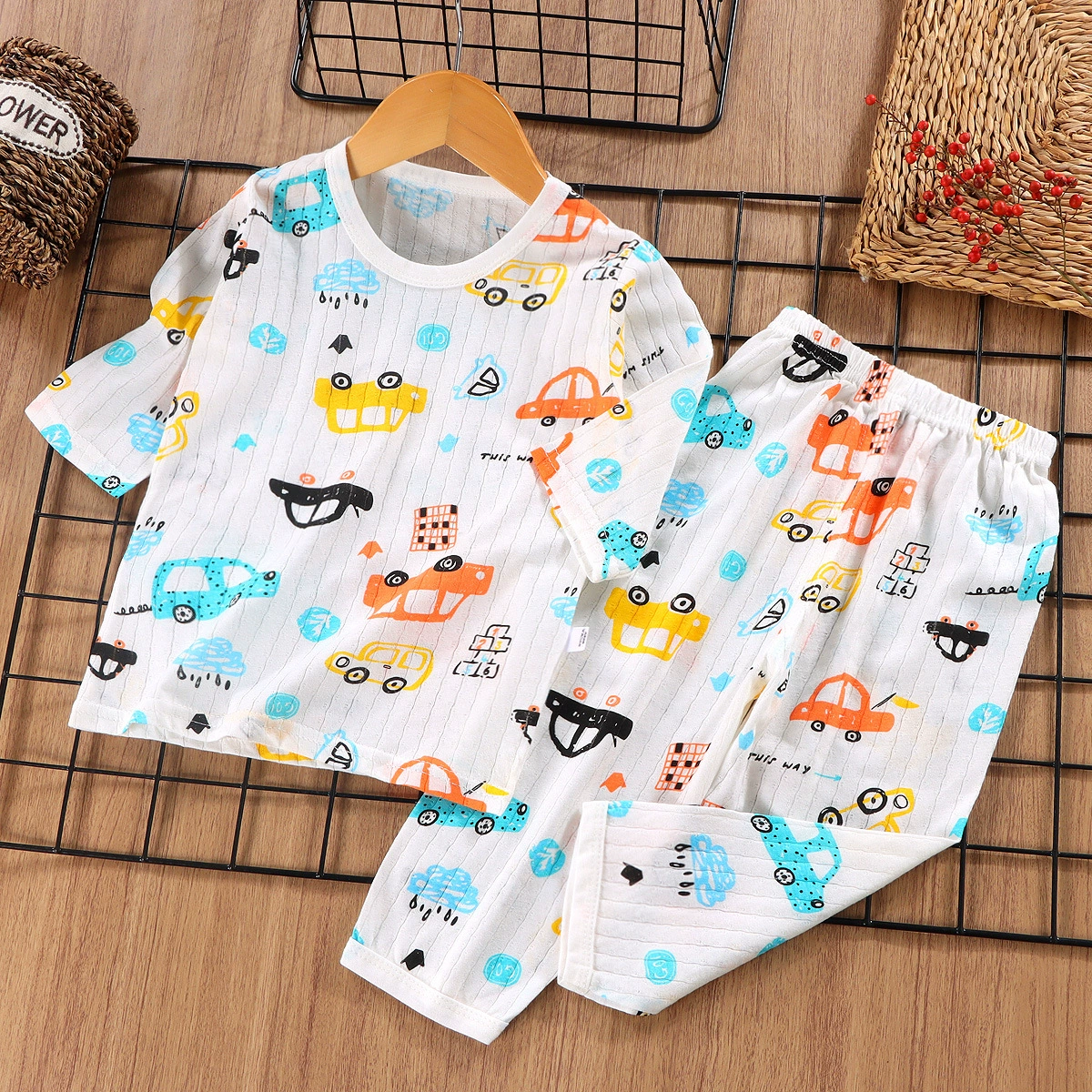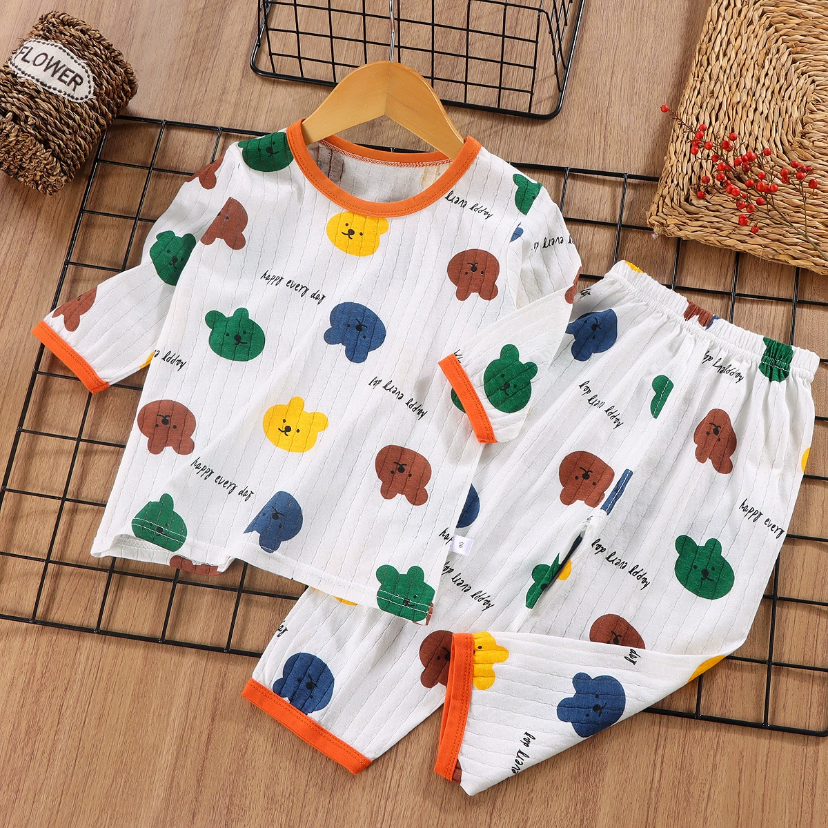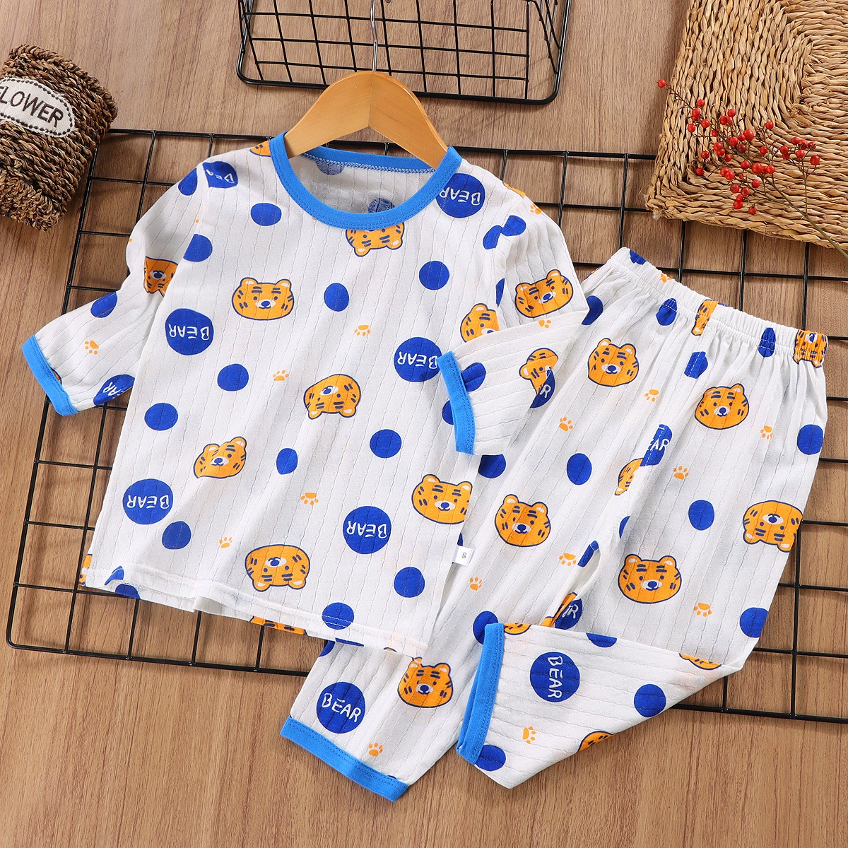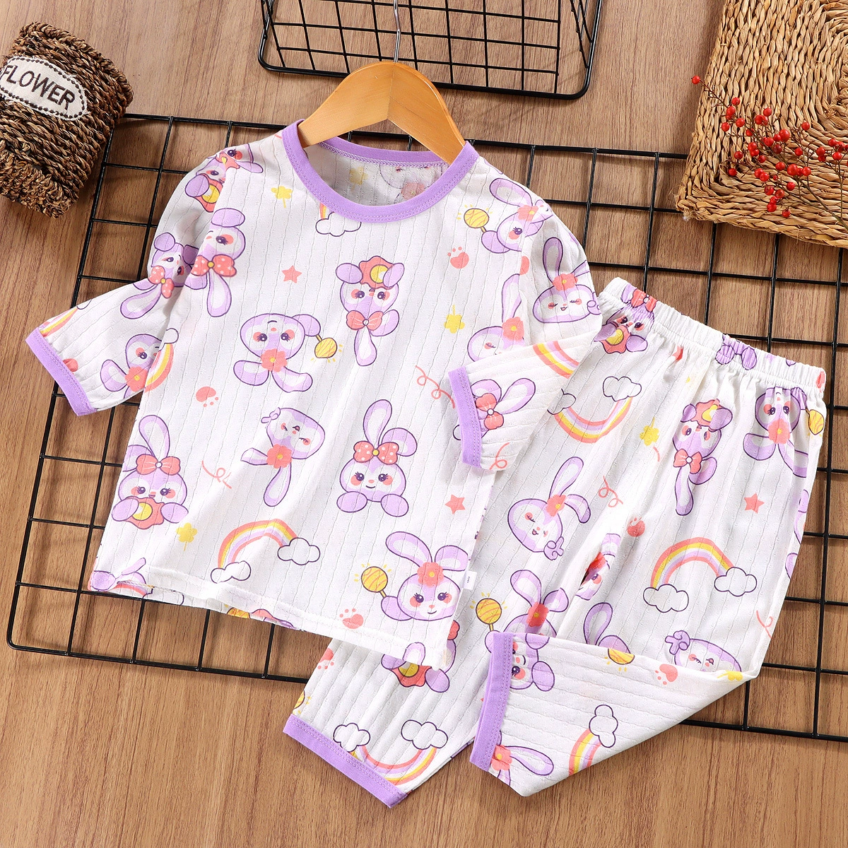 Summer air-conditioned clothing pure cotton breathable three-quarter sleeve pajamas