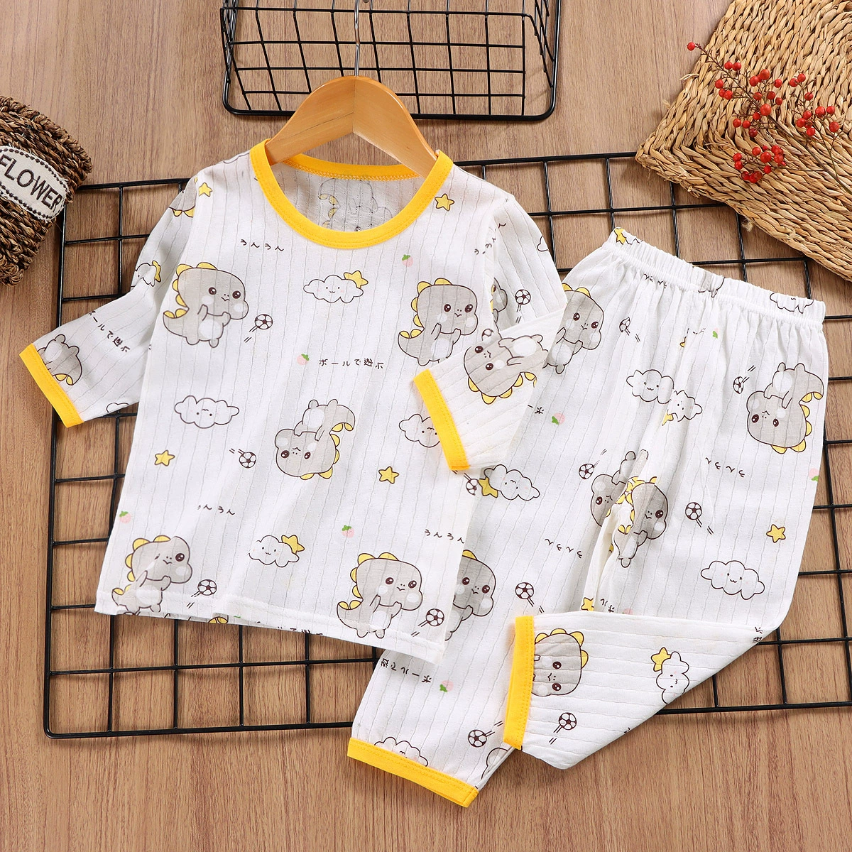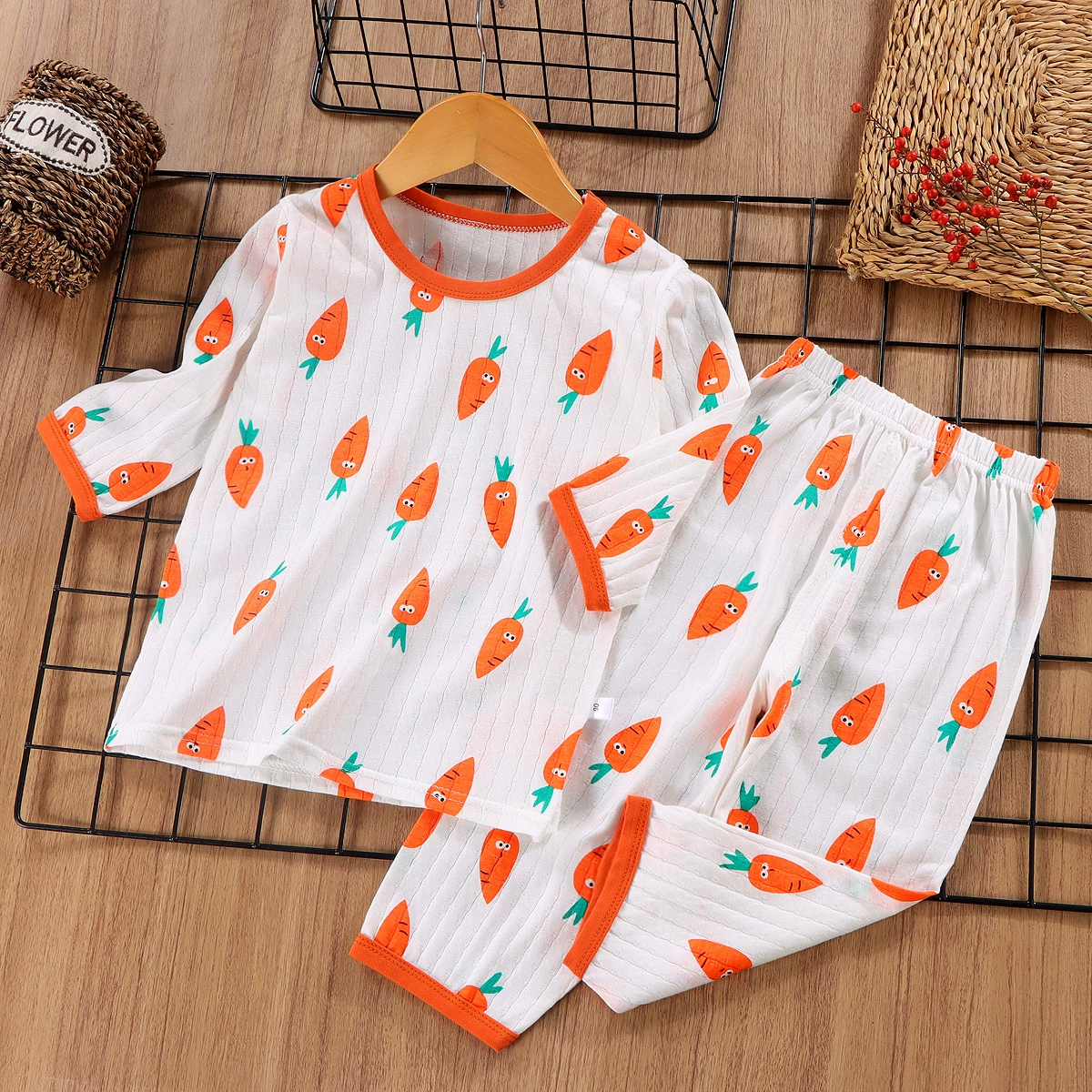 Summer air -conditioned pure cotton breathable seven -point sleeve pajamas