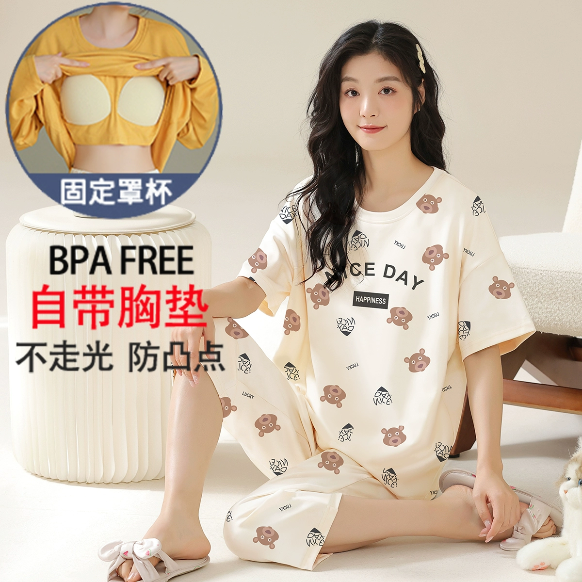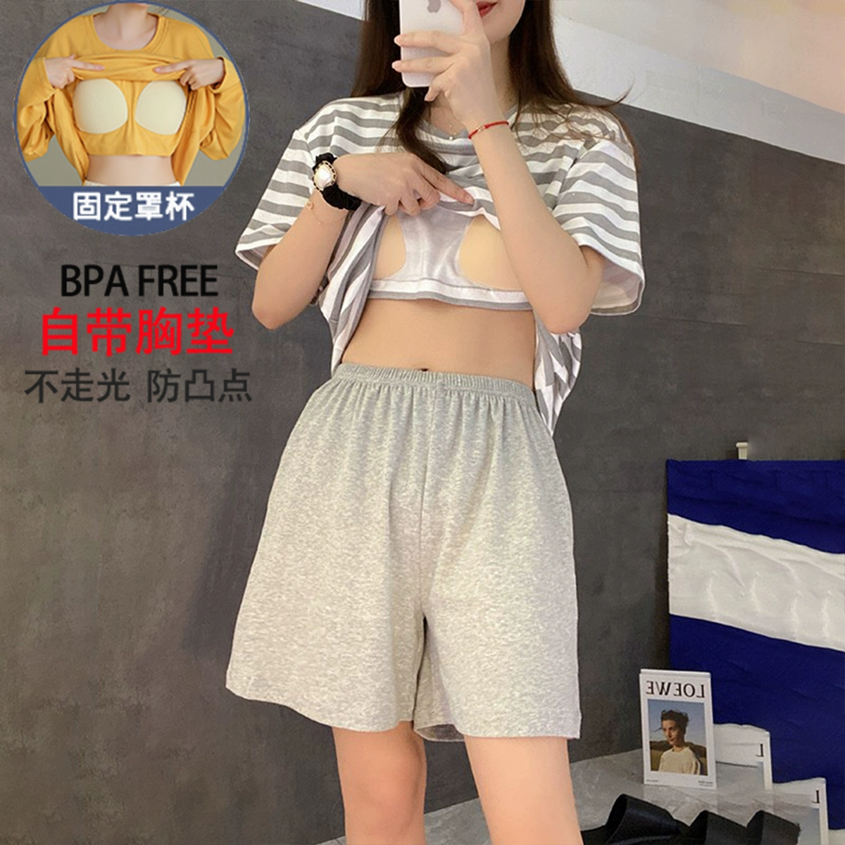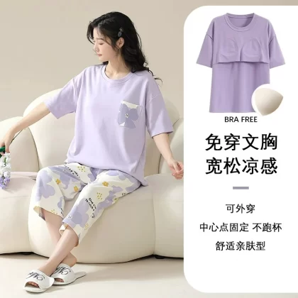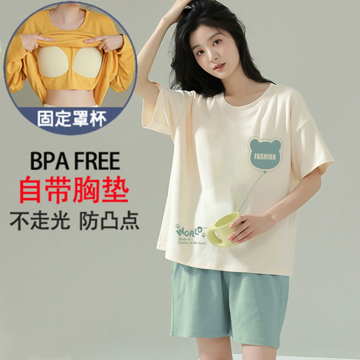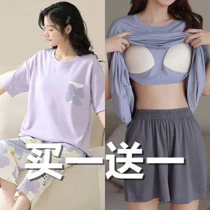 Summer all-in-one women's outerwear cartoon with chest pad