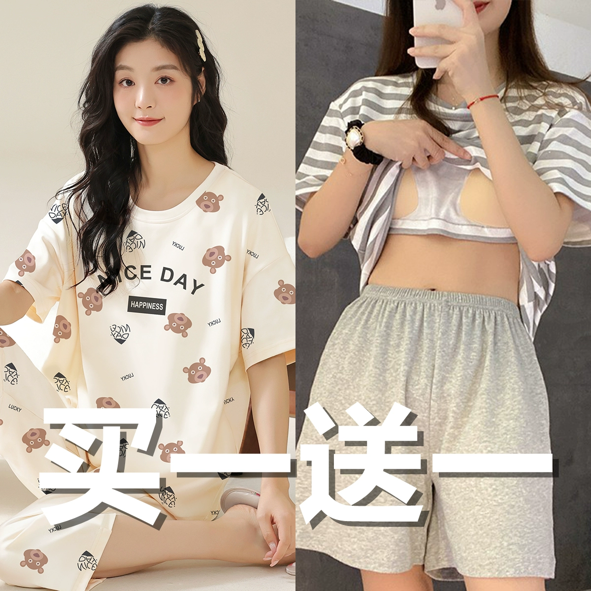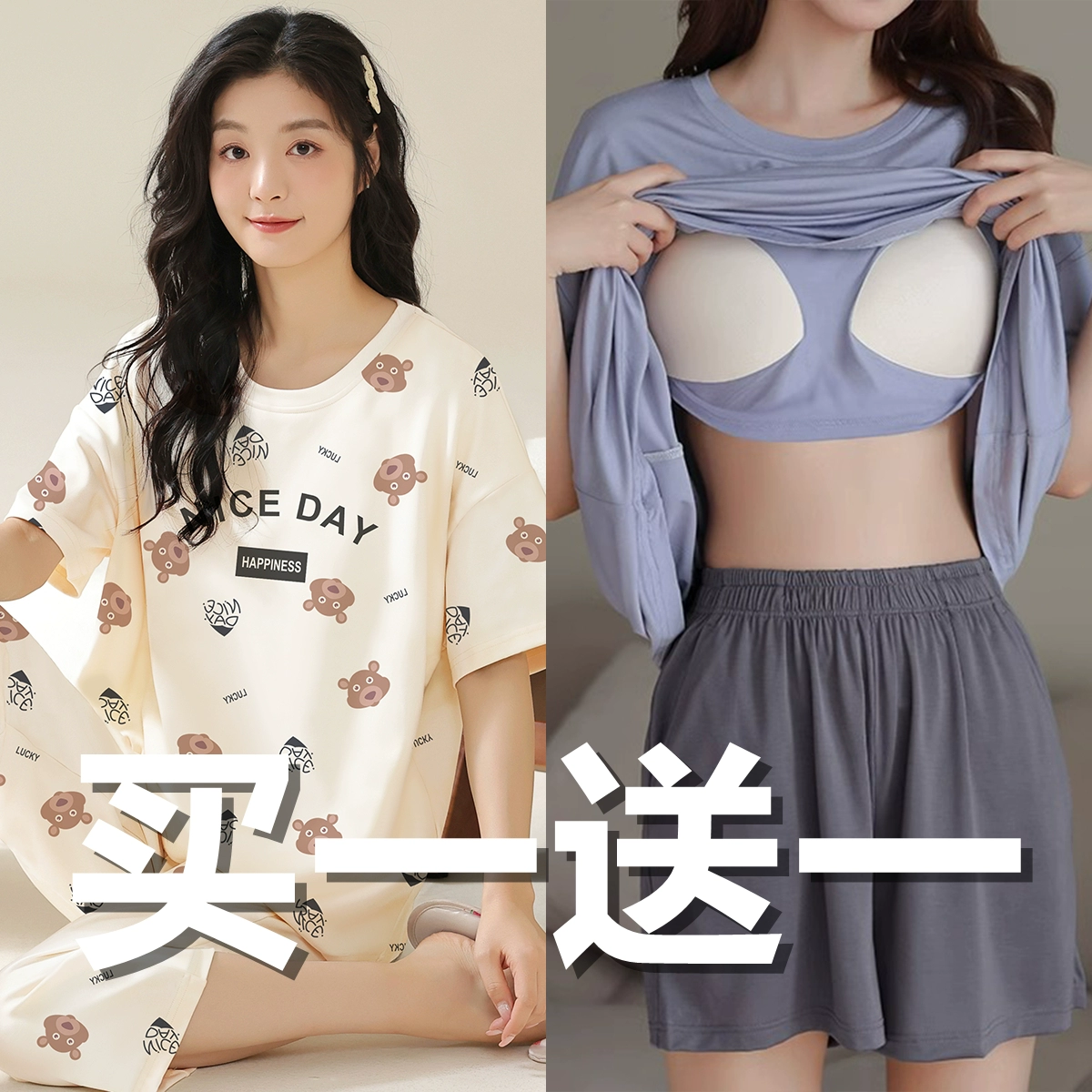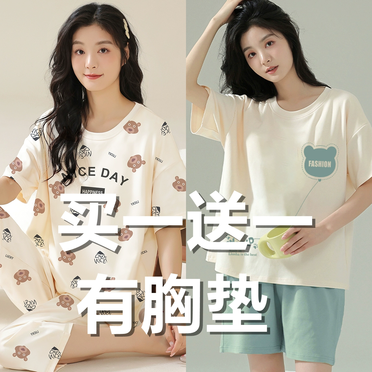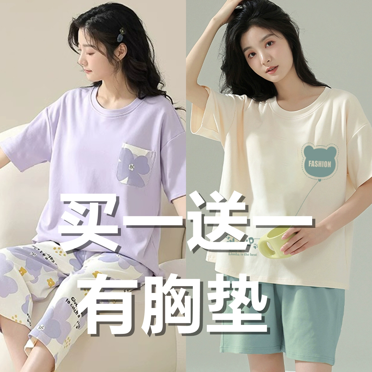 Summer all-in-one women's outerwear cartoon with chest pad