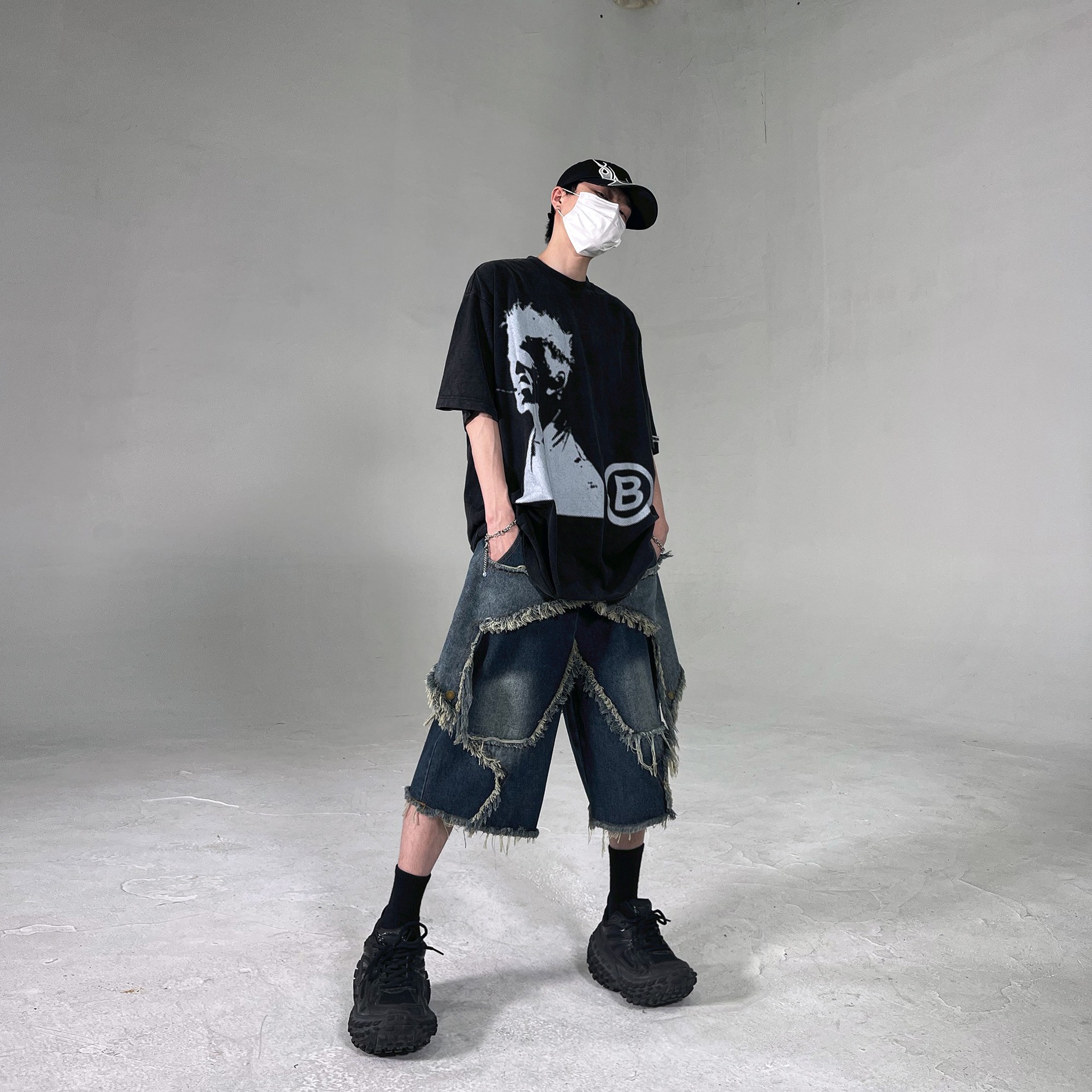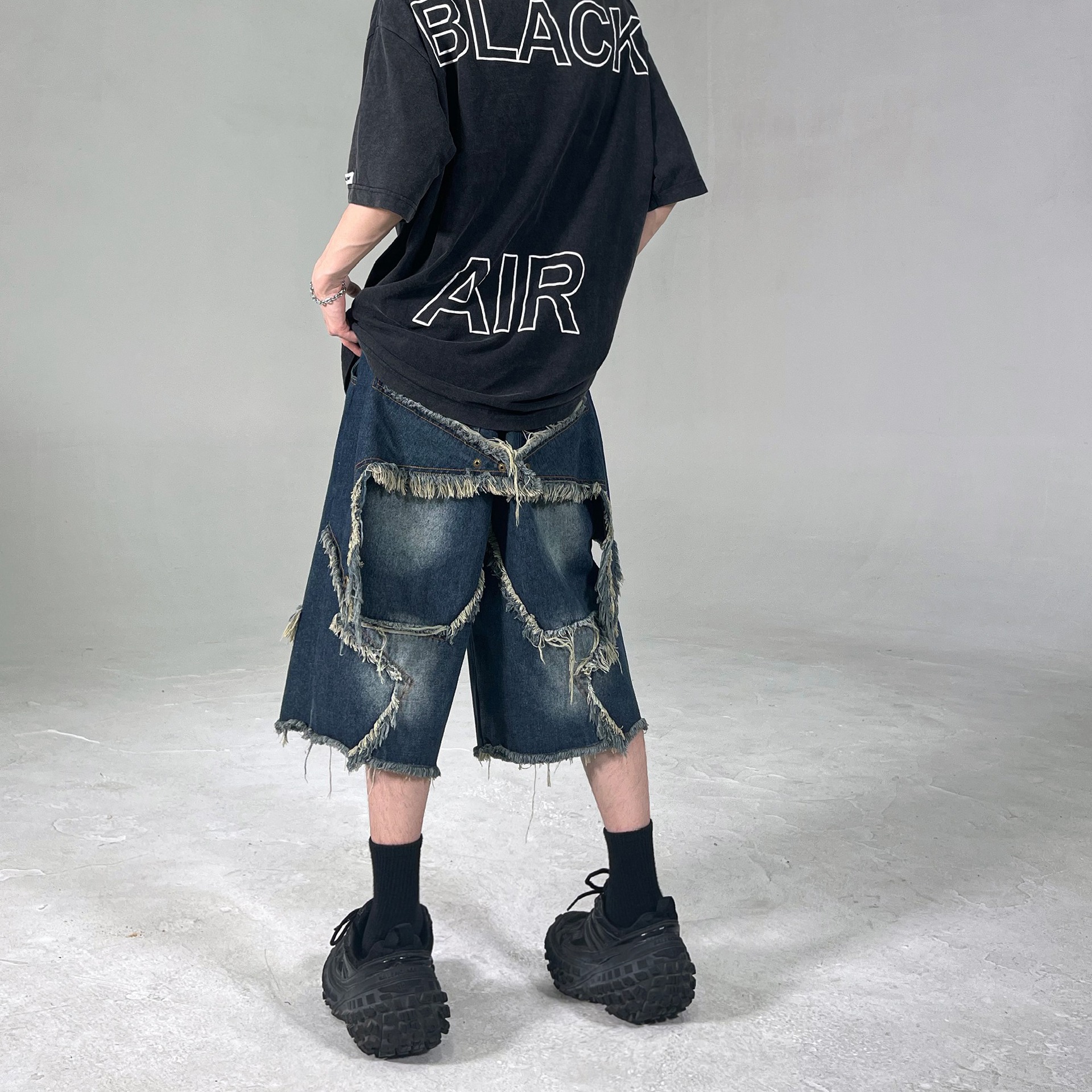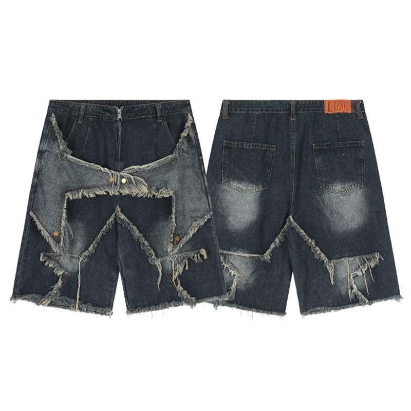 | nameOriginal | Summer American retro frayed design blue Denim shorts men's fashion brand loose niche high street shorts |