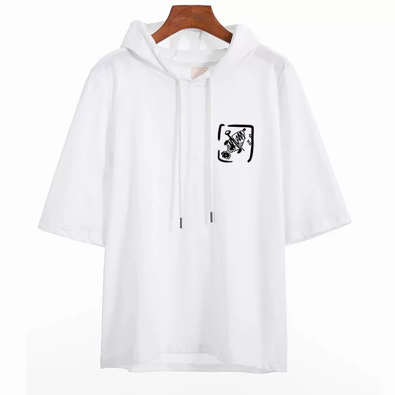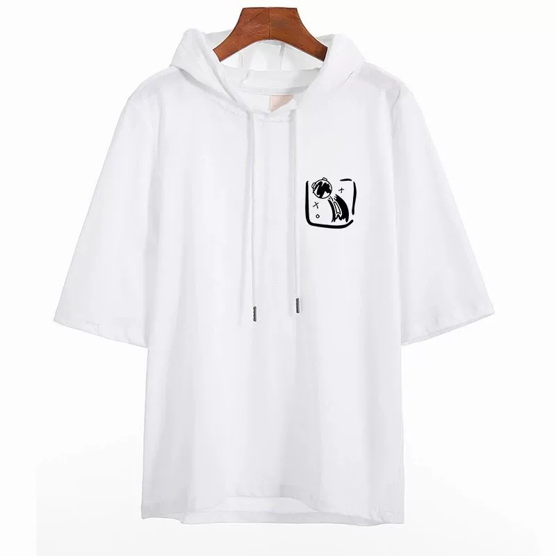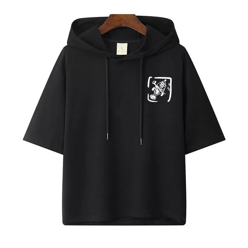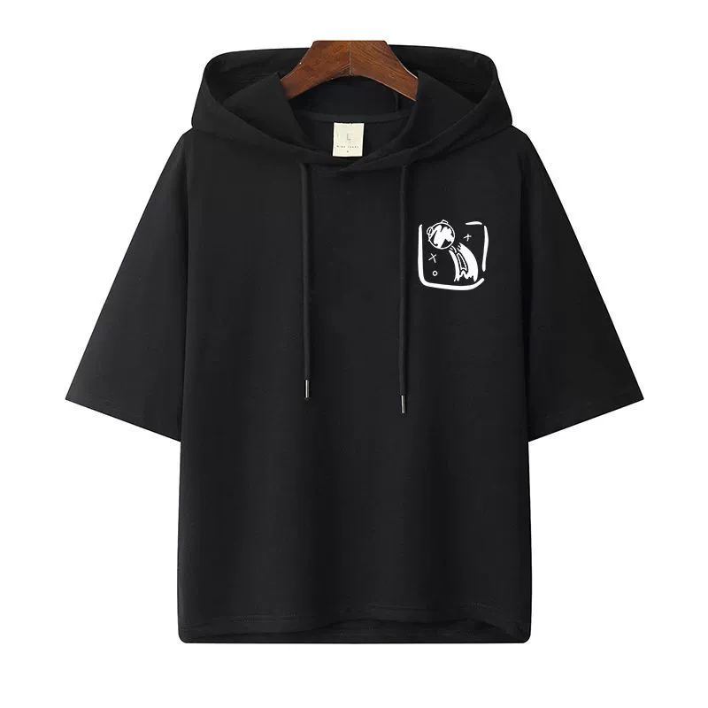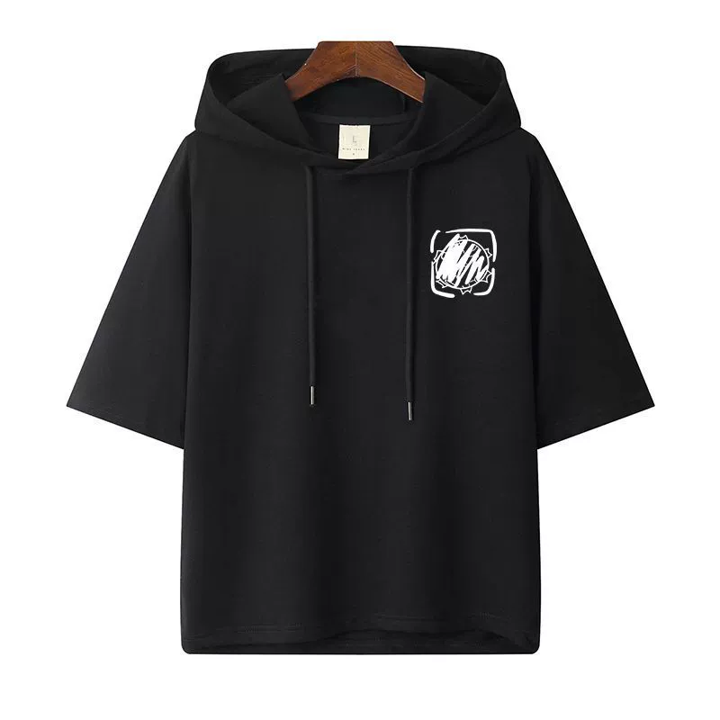 Summer and autumn hooded quarter-sleeve fat sweatshirt T-shirt