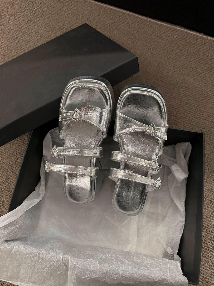 | nameOriginal | Summer and Korean style silver high-end thick-soled slippers with skirt |