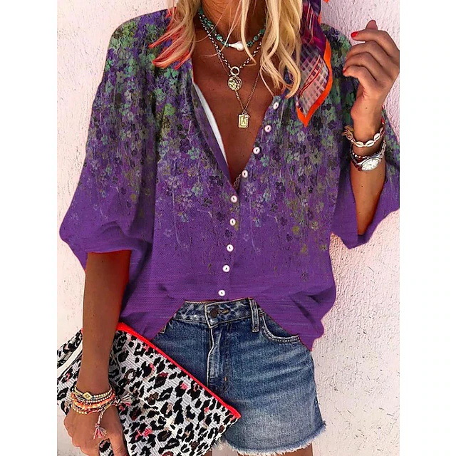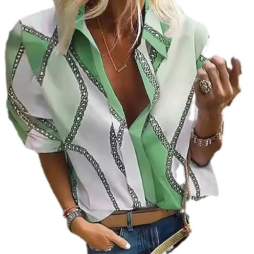 | nameOriginal | Summer and Spring New Women's Stitching Design Sense Holiday Style Elegant Commuter Long Sleeve Shirt Top Plant 3D Printing |